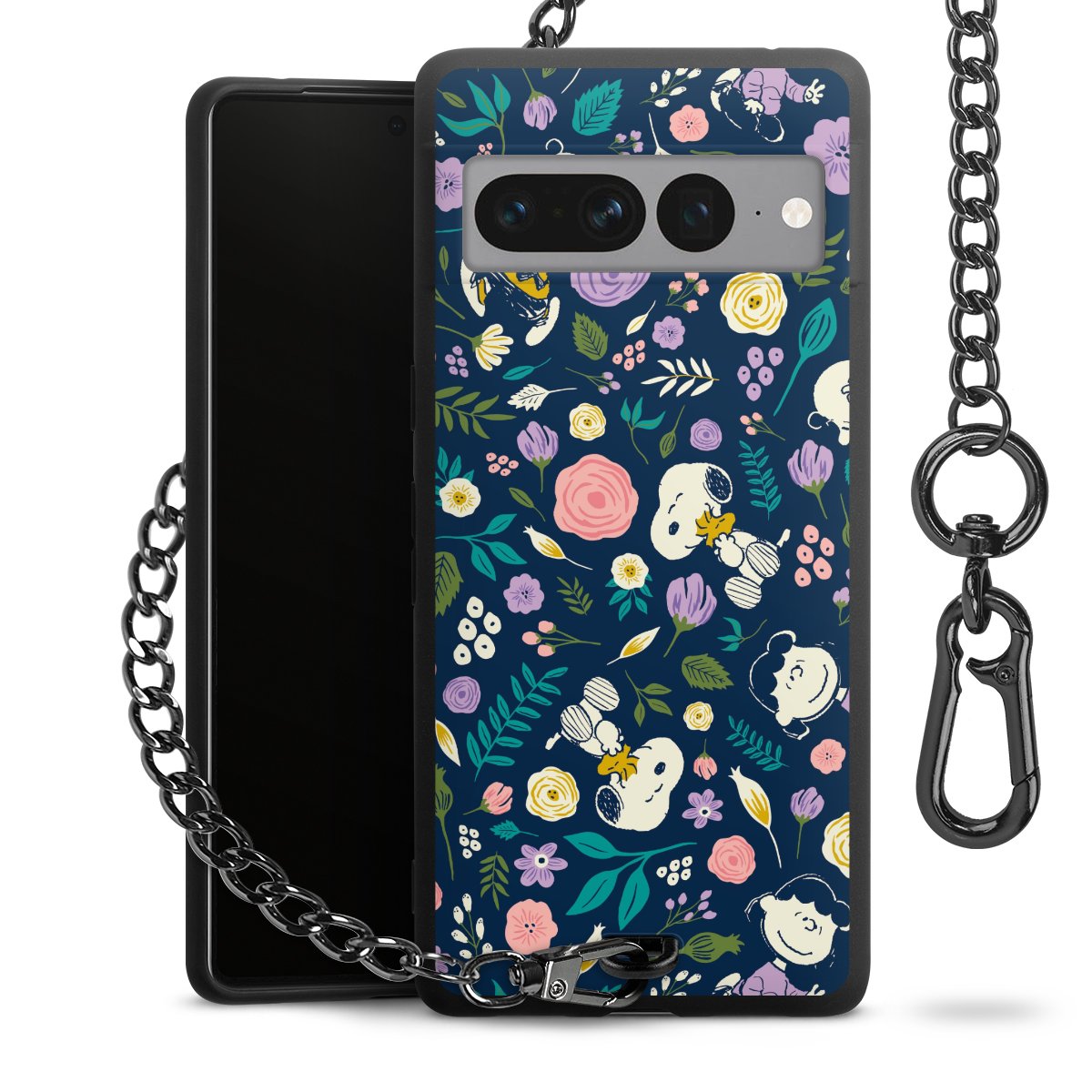 Die mattschwarze Silikon-Handyhülle besteht aus robustem TPU (thermoplastisches Polyurethan). Sie ist flexibel und schützt Dein Smartphone vor Stößen und Kratzern. Die Kette sowie der Karabinerhaken sind aus Metall in Gunmetal-Optik gefertigt. Für dieses Produkt kommen ausschließlich TÜV-geprüfte Materialien zum Einsatz.