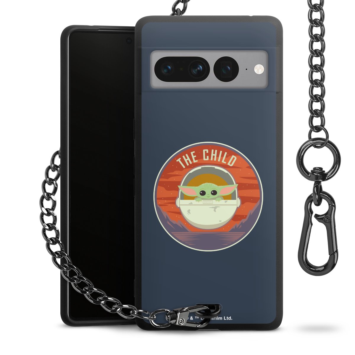 Die mattschwarze Silikon-Handyhülle besteht aus robustem TPU (thermoplastisches Polyurethan). Sie ist flexibel und schützt Dein Smartphone vor Stößen und Kratzern. Die Kette sowie der Karabinerhaken sind aus Metall in Gunmetal-Optik gefertigt. Für dieses Produkt kommen ausschließlich TÜV-geprüfte Materialien zum Einsatz.