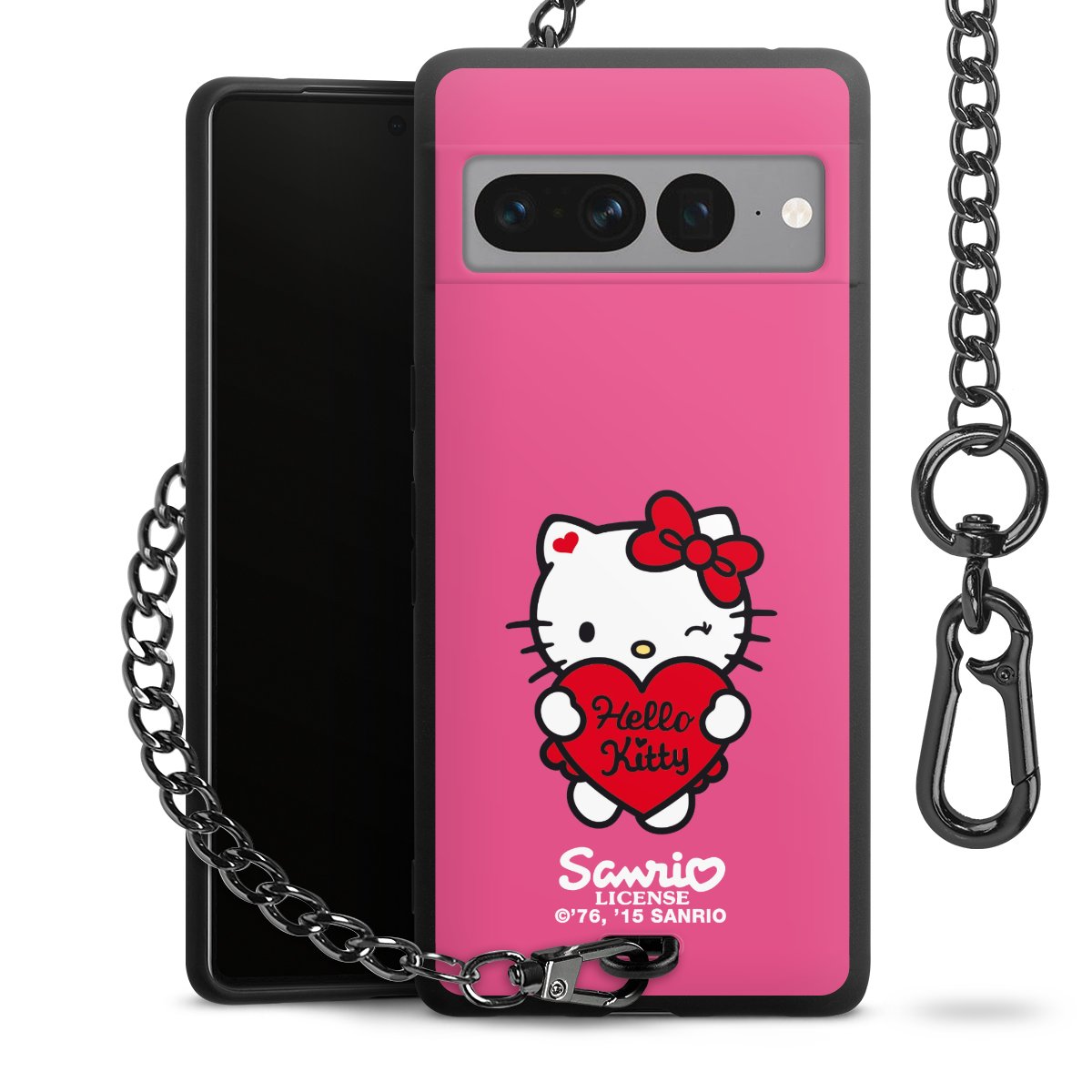 Die mattschwarze Silikon-Handyhülle besteht aus robustem TPU (thermoplastisches Polyurethan). Sie ist flexibel und schützt Dein Smartphone vor Stößen und Kratzern. Die Kette sowie der Karabinerhaken sind aus Metall in Gunmetal-Optik gefertigt. Für dieses Produkt kommen ausschließlich TÜV-geprüfte Materialien zum Einsatz.