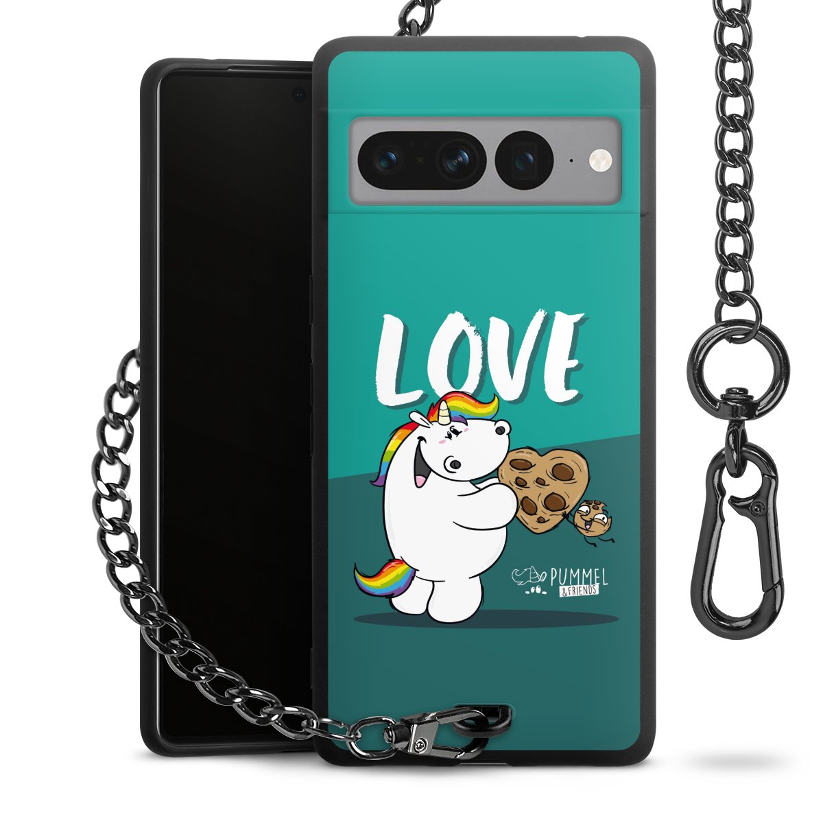 Die mattschwarze Silikon-Handyhülle besteht aus robustem TPU (thermoplastisches Polyurethan). Sie ist flexibel und schützt Dein Smartphone vor Stößen und Kratzern. Die Kette sowie der Karabinerhaken sind aus Metall in Gunmetal-Optik gefertigt. Für dieses Produkt kommen ausschließlich TÜV-geprüfte Materialien zum Einsatz.