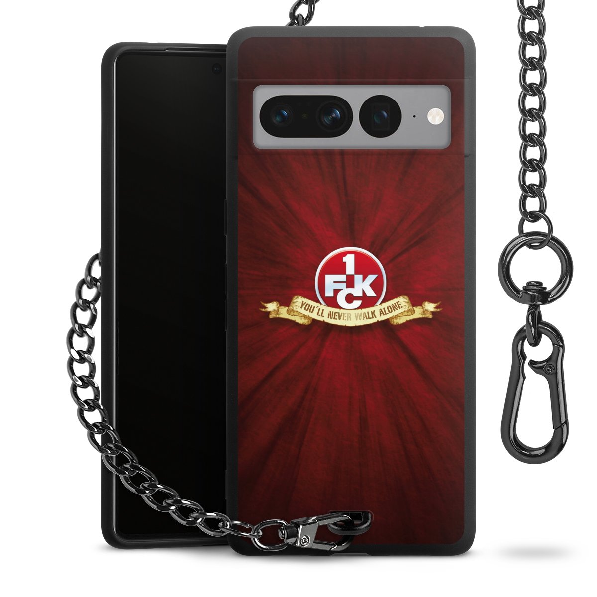 Die mattschwarze Silikon-Handyhülle besteht aus robustem TPU (thermoplastisches Polyurethan). Sie ist flexibel und schützt Dein Smartphone vor Stößen und Kratzern. Die Kette sowie der Karabinerhaken sind aus Metall in Gunmetal-Optik gefertigt. Für dieses Produkt kommen ausschließlich TÜV-geprüfte Materialien zum Einsatz.