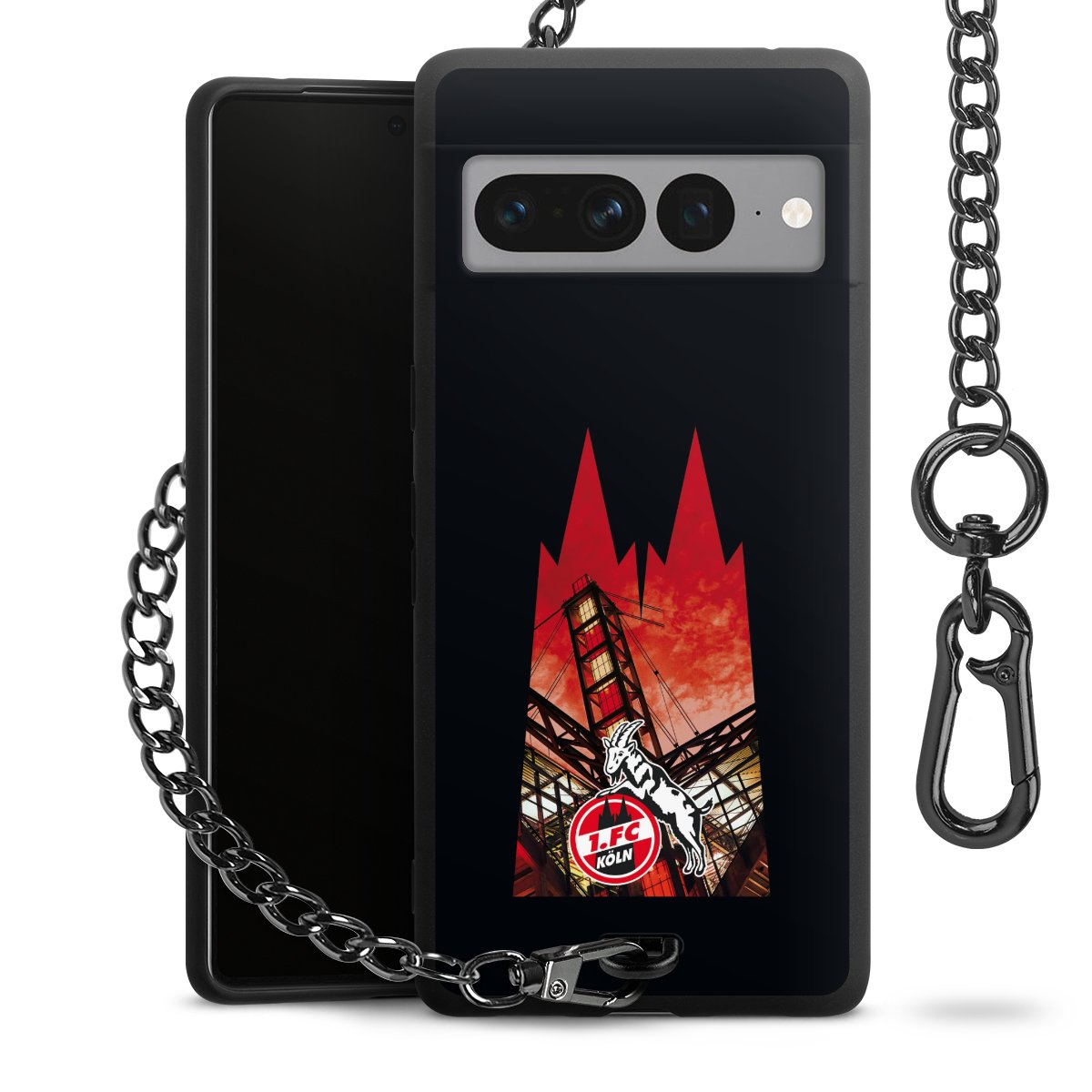 Die mattschwarze Silikon-Handyhülle besteht aus robustem TPU (thermoplastisches Polyurethan). Sie ist flexibel und schützt Dein Smartphone vor Stößen und Kratzern. Die Kette sowie der Karabinerhaken sind aus Metall in Gunmetal-Optik gefertigt. Für dieses Produkt kommen ausschließlich TÜV-geprüfte Materialien zum Einsatz.