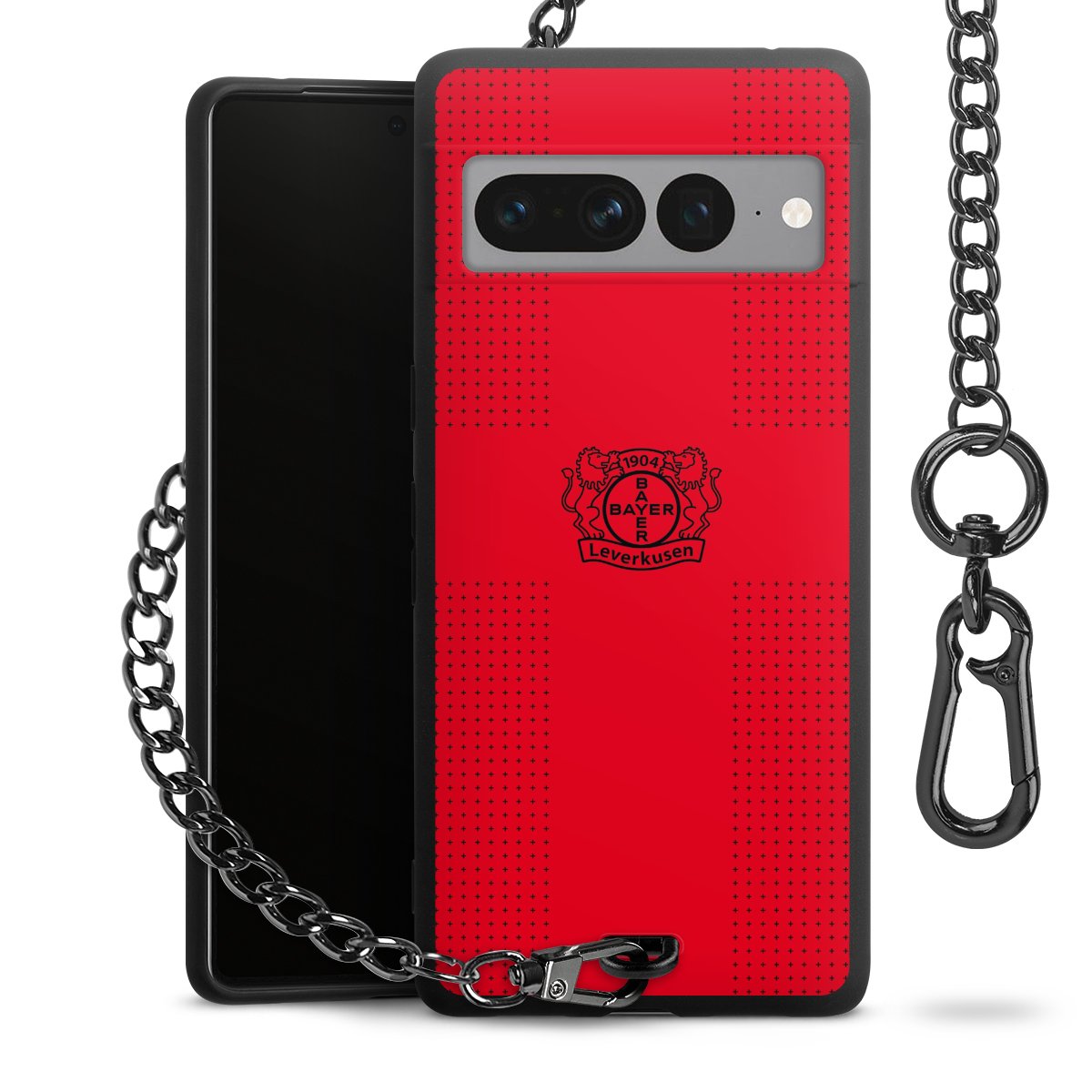 Die mattschwarze Silikon-Handyhülle besteht aus robustem TPU (thermoplastisches Polyurethan). Sie ist flexibel und schützt Dein Smartphone vor Stößen und Kratzern. Die Kette sowie der Karabinerhaken sind aus Metall in Gunmetal-Optik gefertigt. Für dieses Produkt kommen ausschließlich TÜV-geprüfte Materialien zum Einsatz.