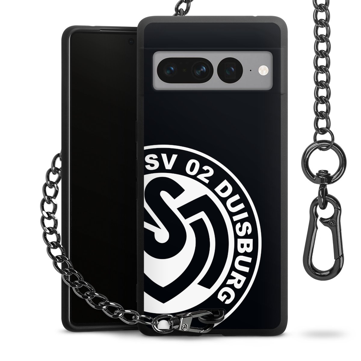 Die mattschwarze Silikon-Handyhülle besteht aus robustem TPU (thermoplastisches Polyurethan). Sie ist flexibel und schützt Dein Smartphone vor Stößen und Kratzern. Die Kette sowie der Karabinerhaken sind aus Metall in Gunmetal-Optik gefertigt. Für dieses Produkt kommen ausschließlich TÜV-geprüfte Materialien zum Einsatz.