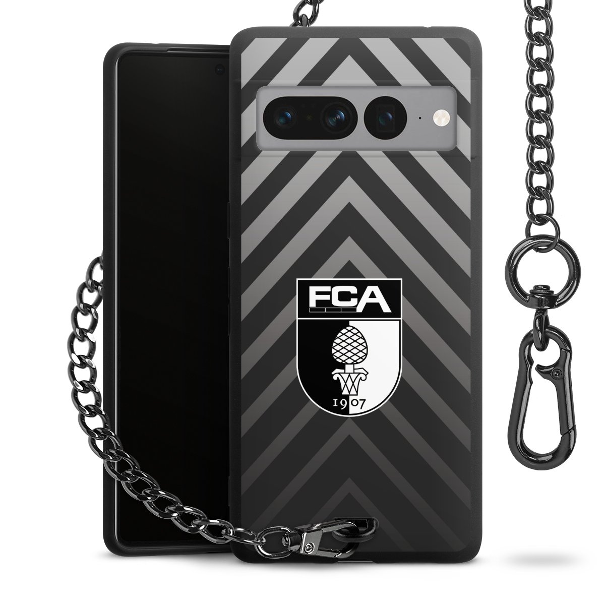 Die mattschwarze Silikon-Handyhülle besteht aus robustem TPU (thermoplastisches Polyurethan). Sie ist flexibel und schützt Dein Smartphone vor Stößen und Kratzern. Die Kette sowie der Karabinerhaken sind aus Metall in Gunmetal-Optik gefertigt. Für dieses Produkt kommen ausschließlich TÜV-geprüfte Materialien zum Einsatz.