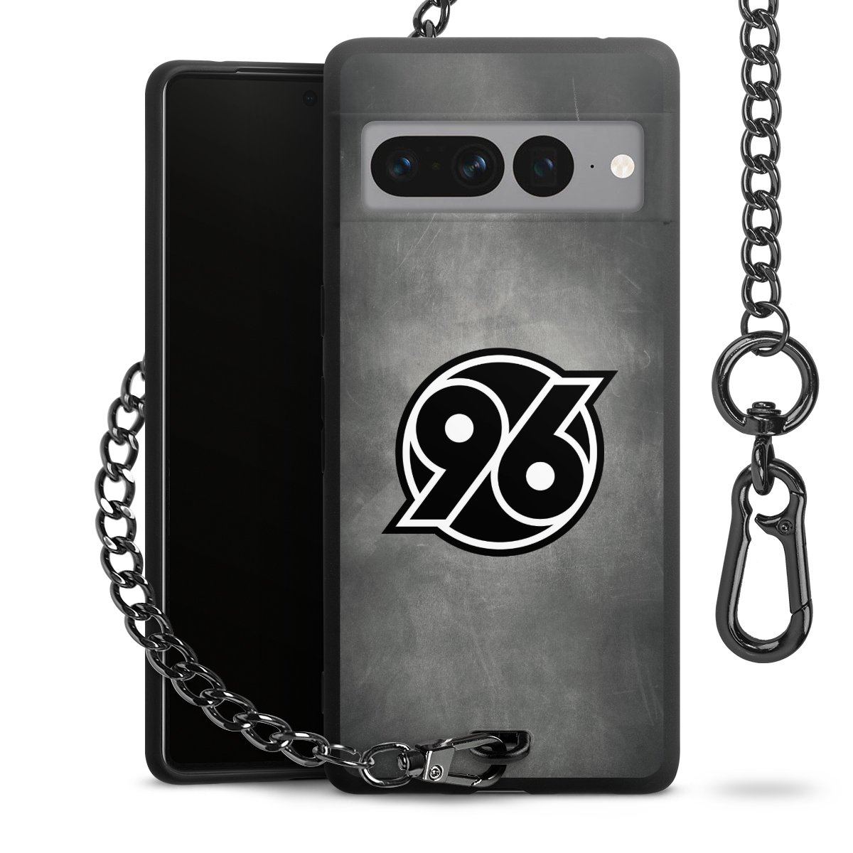 Die mattschwarze Silikon-Handyhülle besteht aus robustem TPU (thermoplastisches Polyurethan). Sie ist flexibel und schützt Dein Smartphone vor Stößen und Kratzern. Die Kette sowie der Karabinerhaken sind aus Metall in Gunmetal-Optik gefertigt. Für dieses Produkt kommen ausschließlich TÜV-geprüfte Materialien zum Einsatz.