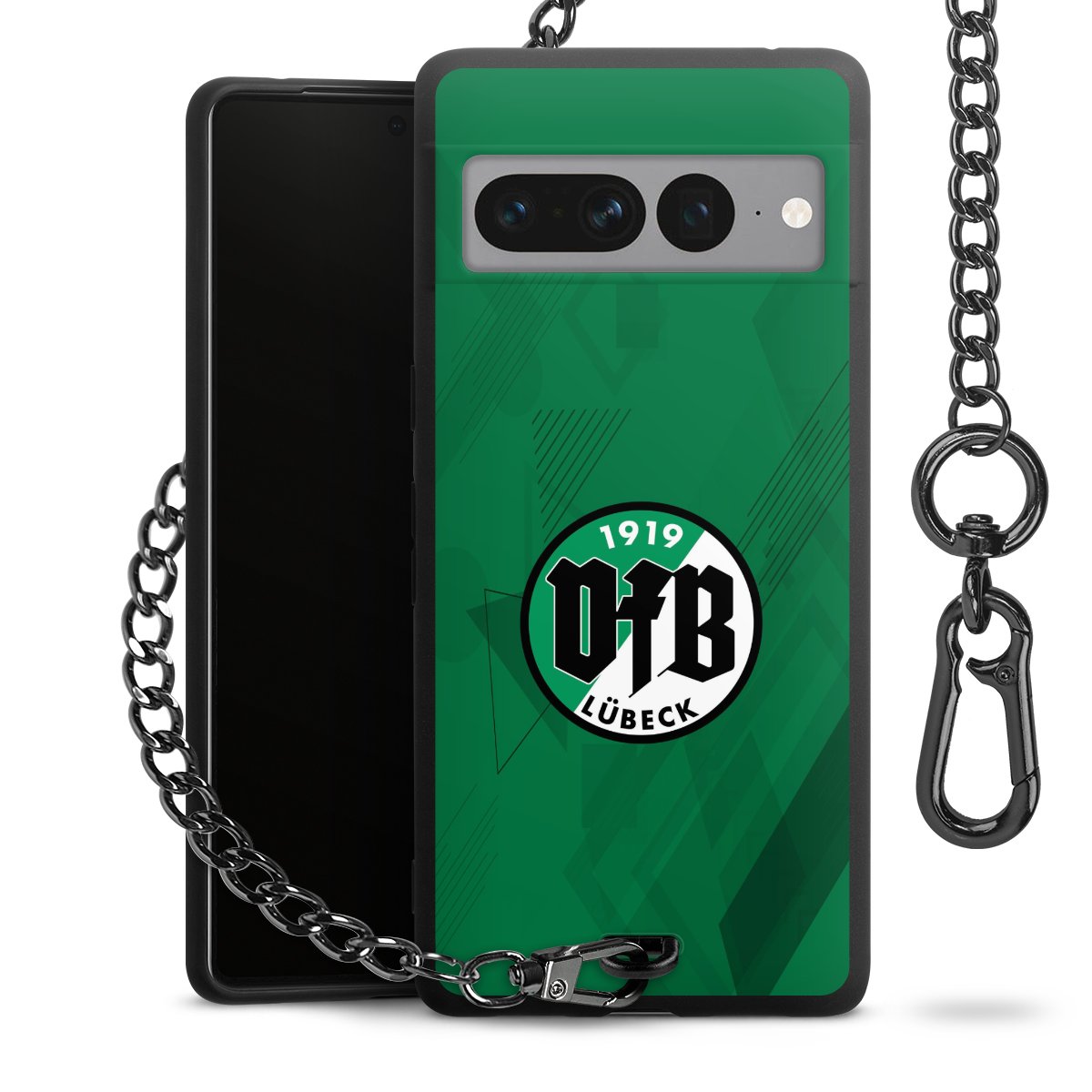 Die mattschwarze Silikon-Handyhülle besteht aus robustem TPU (thermoplastisches Polyurethan). Sie ist flexibel und schützt Dein Smartphone vor Stößen und Kratzern. Die Kette sowie der Karabinerhaken sind aus Metall in Gunmetal-Optik gefertigt. Für dieses Produkt kommen ausschließlich TÜV-geprüfte Materialien zum Einsatz.
