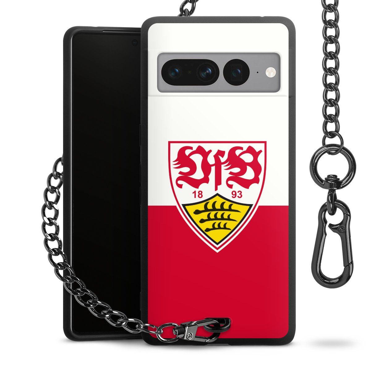 Die mattschwarze Silikon-Handyhülle besteht aus robustem TPU (thermoplastisches Polyurethan). Sie ist flexibel und schützt Dein Smartphone vor Stößen und Kratzern. Die Kette sowie der Karabinerhaken sind aus Metall in Gunmetal-Optik gefertigt. Für dieses Produkt kommen ausschließlich TÜV-geprüfte Materialien zum Einsatz.