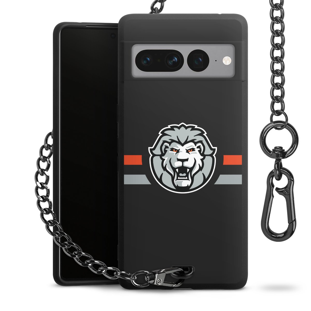 Die mattschwarze Silikon-Handyhülle besteht aus robustem TPU (thermoplastisches Polyurethan). Sie ist flexibel und schützt Dein Smartphone vor Stößen und Kratzern. Die Kette sowie der Karabinerhaken sind aus Metall in Gunmetal-Optik gefertigt. Für dieses Produkt kommen ausschließlich TÜV-geprüfte Materialien zum Einsatz.