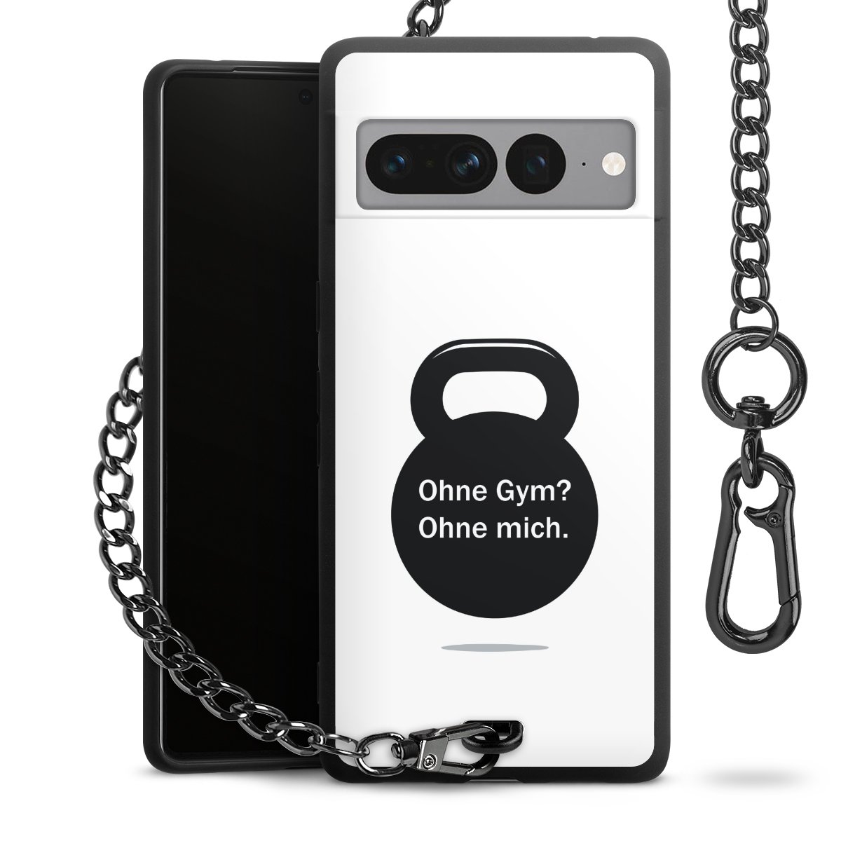 Die mattschwarze Silikon-Handyhülle besteht aus robustem TPU (thermoplastisches Polyurethan). Sie ist flexibel und schützt Dein Smartphone vor Stößen und Kratzern. Die Kette sowie der Karabinerhaken sind aus Metall in Gunmetal-Optik gefertigt. Für dieses Produkt kommen ausschließlich TÜV-geprüfte Materialien zum Einsatz.