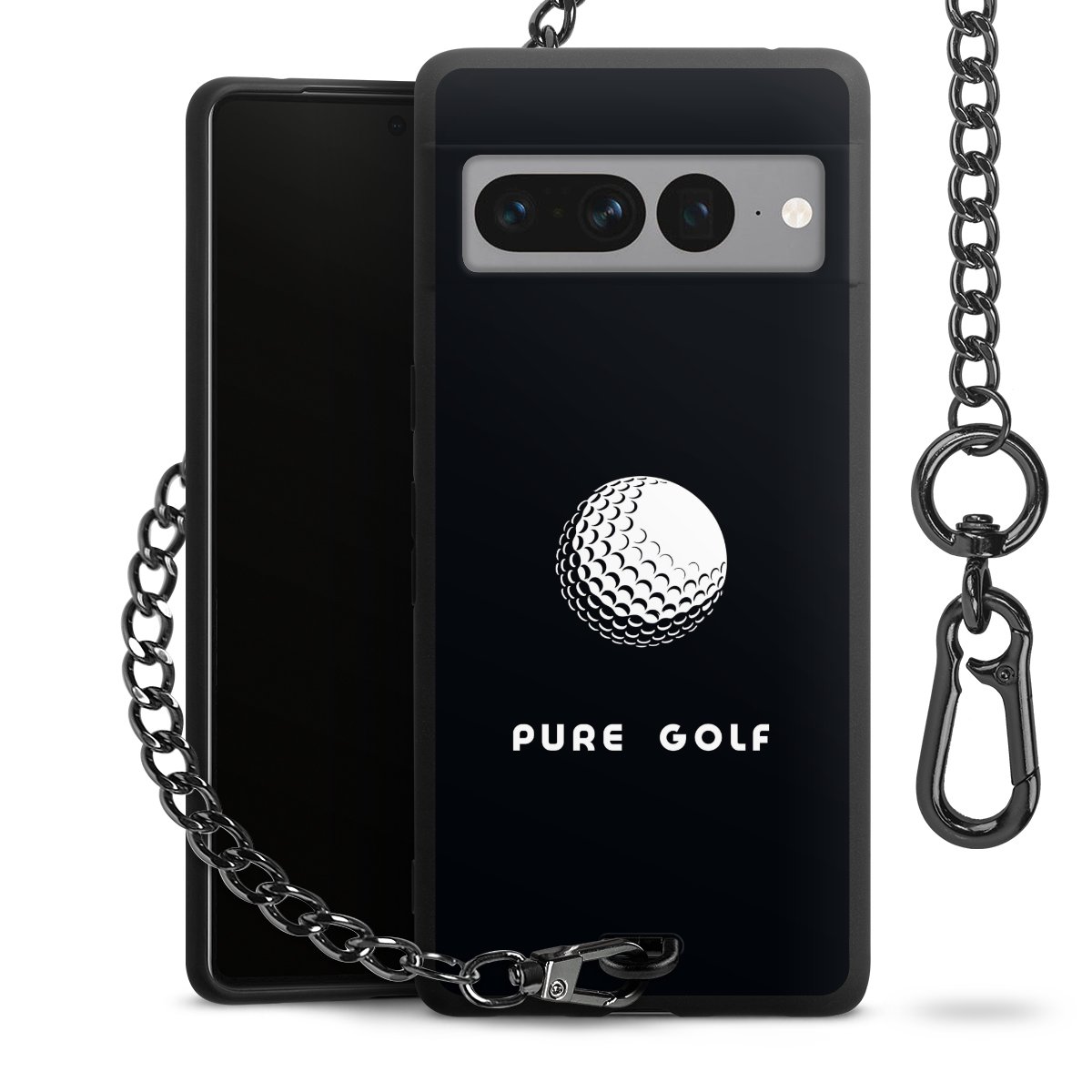 • Mattschwarze Handyhülle mit Metallkette