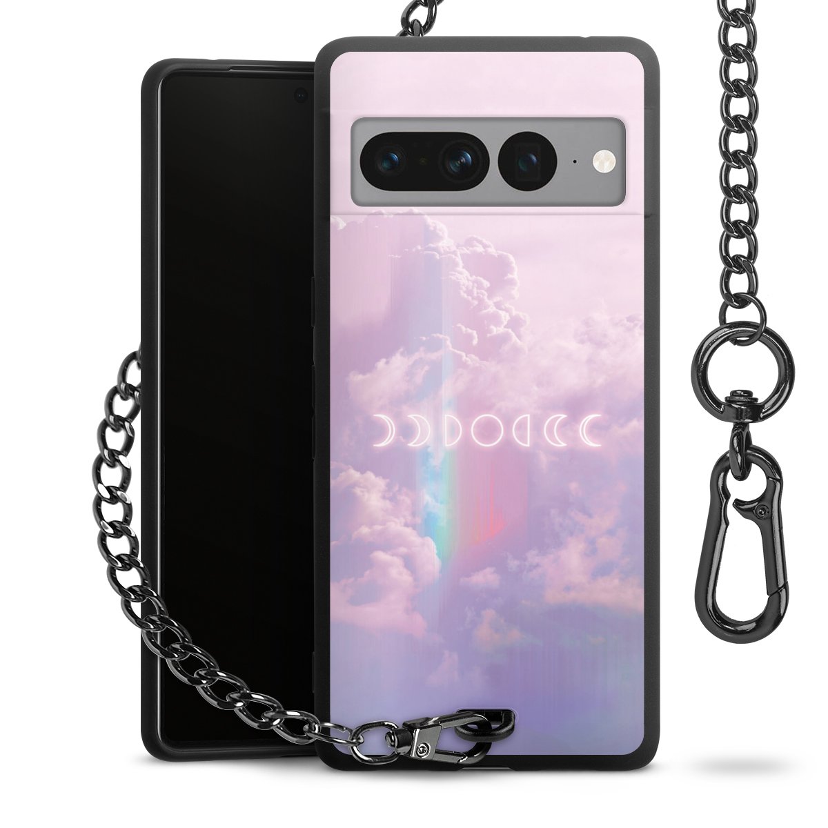 Die mattschwarze Silikon-Handyhülle besteht aus robustem TPU (thermoplastisches Polyurethan). Sie ist flexibel und schützt Dein Smartphone vor Stößen und Kratzern. Die Kette sowie der Karabinerhaken sind aus Metall in Gunmetal-Optik gefertigt. Für dieses Produkt kommen ausschließlich TÜV-geprüfte Materialien zum Einsatz.