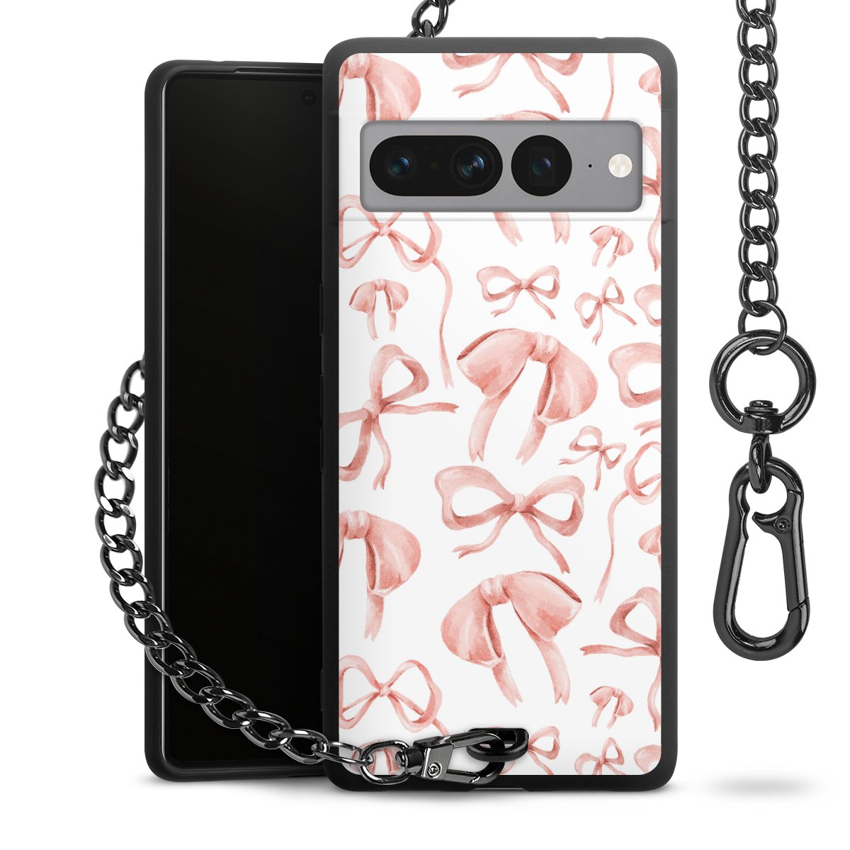 • Mattschwarze Handyhülle mit Metallkette