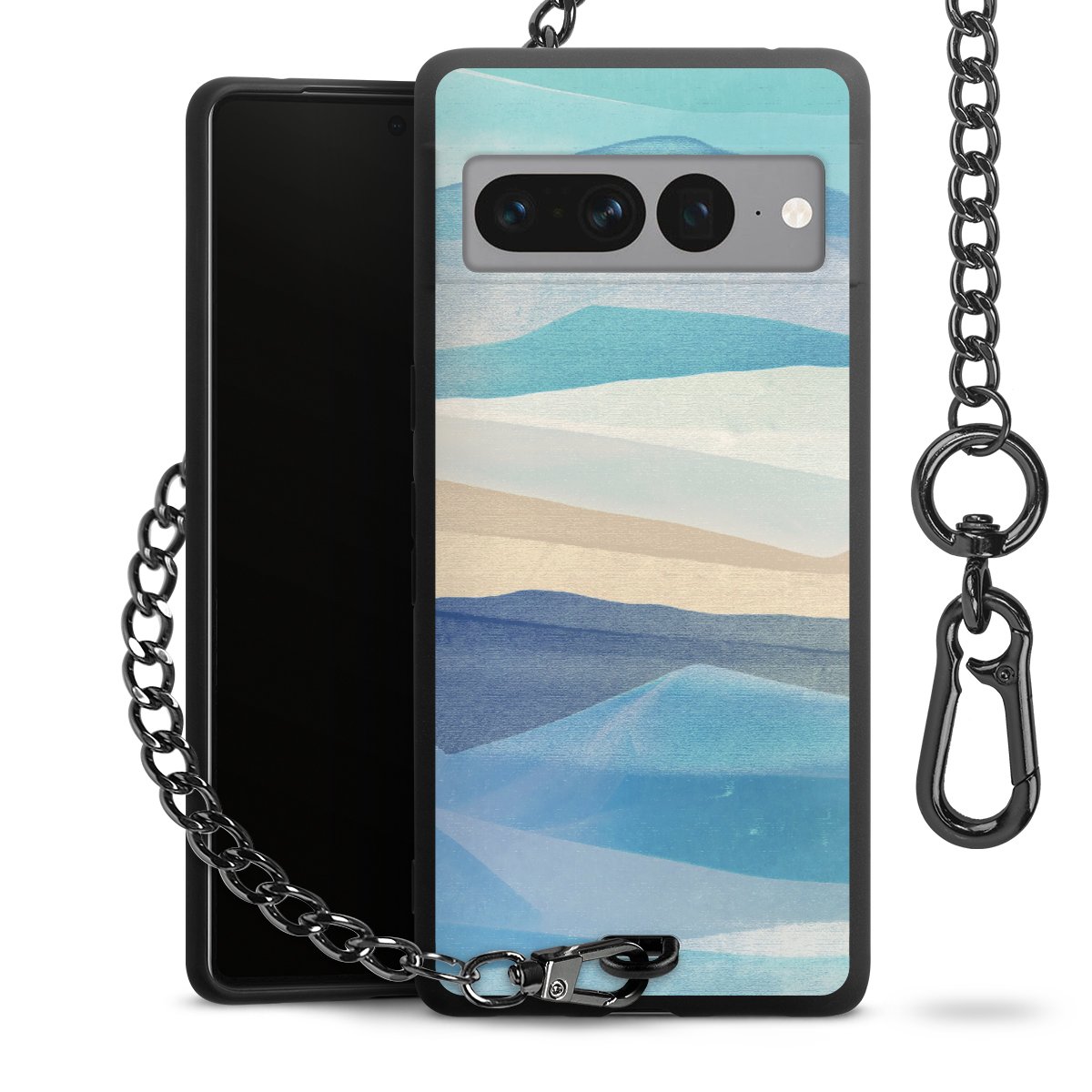 Die mattschwarze Silikon-Handyhülle besteht aus robustem TPU (thermoplastisches Polyurethan). Sie ist flexibel und schützt Dein Smartphone vor Stößen und Kratzern. Die Kette sowie der Karabinerhaken sind aus Metall in Gunmetal-Optik gefertigt. Für dieses Produkt kommen ausschließlich TÜV-geprüfte Materialien zum Einsatz.