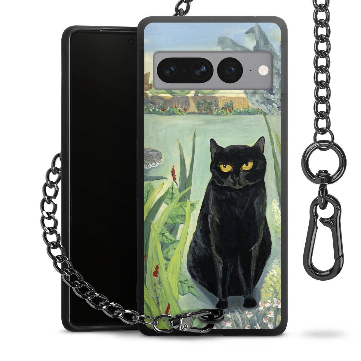 - Mattschwarze Handyhülle mit Metallkette
