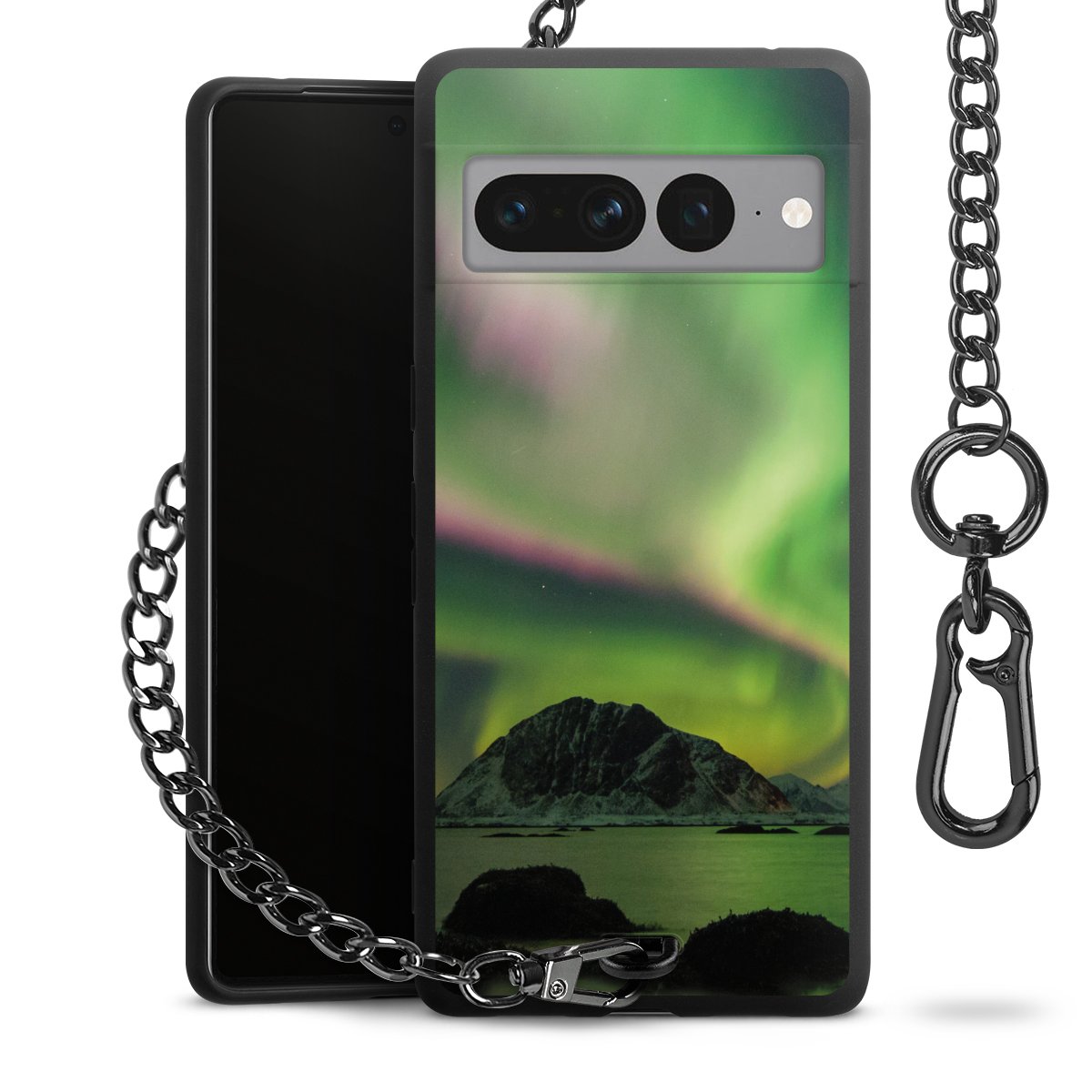 - Mattschwarze Handyhülle mit Metallkette