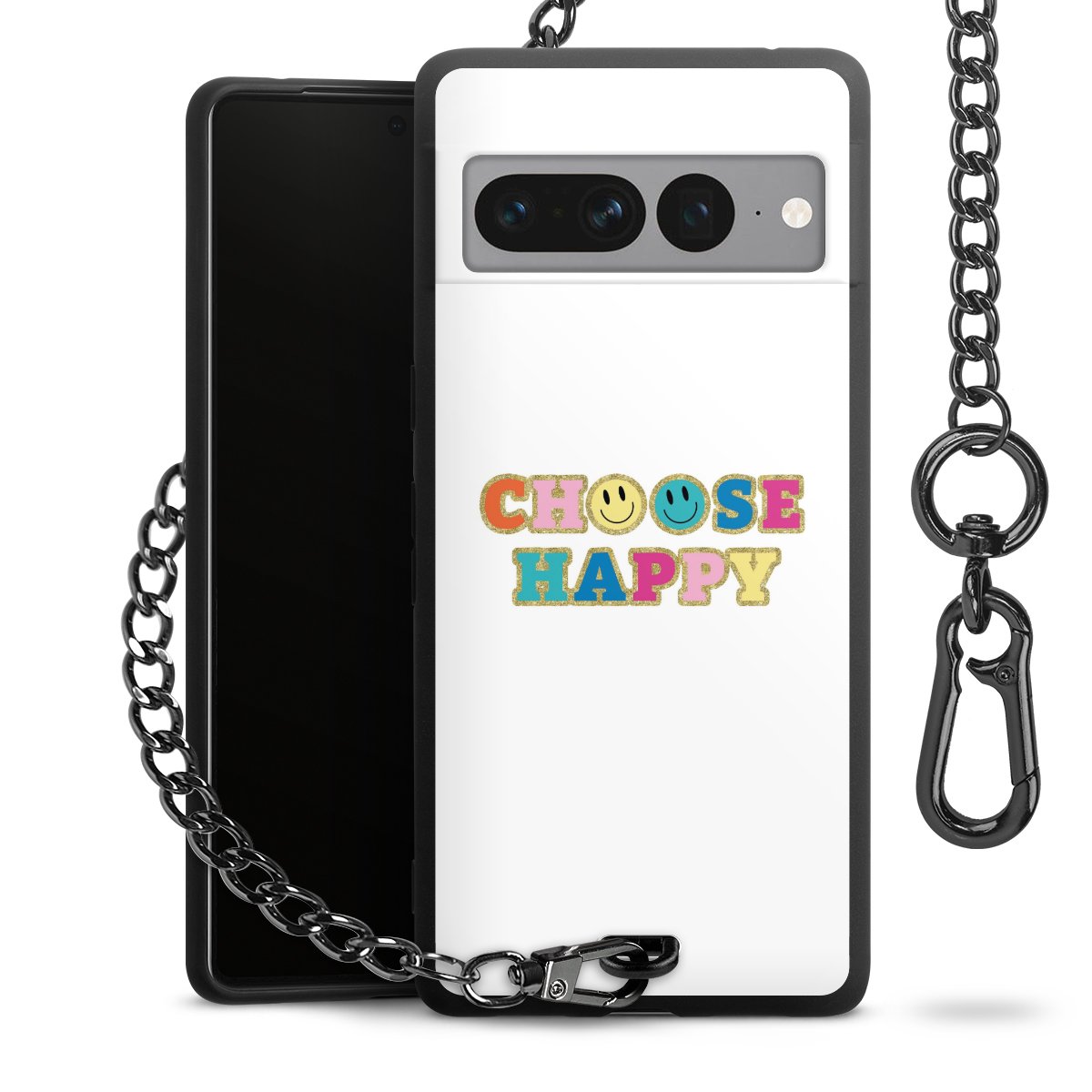 Die mattschwarze Silikon-Handyhülle besteht aus robustem TPU (thermoplastisches Polyurethan). Sie ist flexibel und schützt Dein Smartphone vor Stößen und Kratzern. Die Kette sowie der Karabinerhaken sind aus Metall in Gunmetal-Optik gefertigt. Für dieses Produkt kommen ausschließlich TÜV-geprüfte Materialien zum Einsatz.