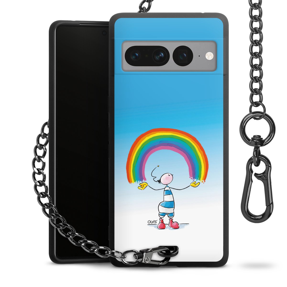 Die mattschwarze Silikon-Handyhülle besteht aus robustem TPU (thermoplastisches Polyurethan). Sie ist flexibel und schützt Dein Smartphone vor Stößen und Kratzern. Die Kette sowie der Karabinerhaken sind aus Metall in Gunmetal-Optik gefertigt. Für dieses Produkt kommen ausschließlich TÜV-geprüfte Materialien zum Einsatz.