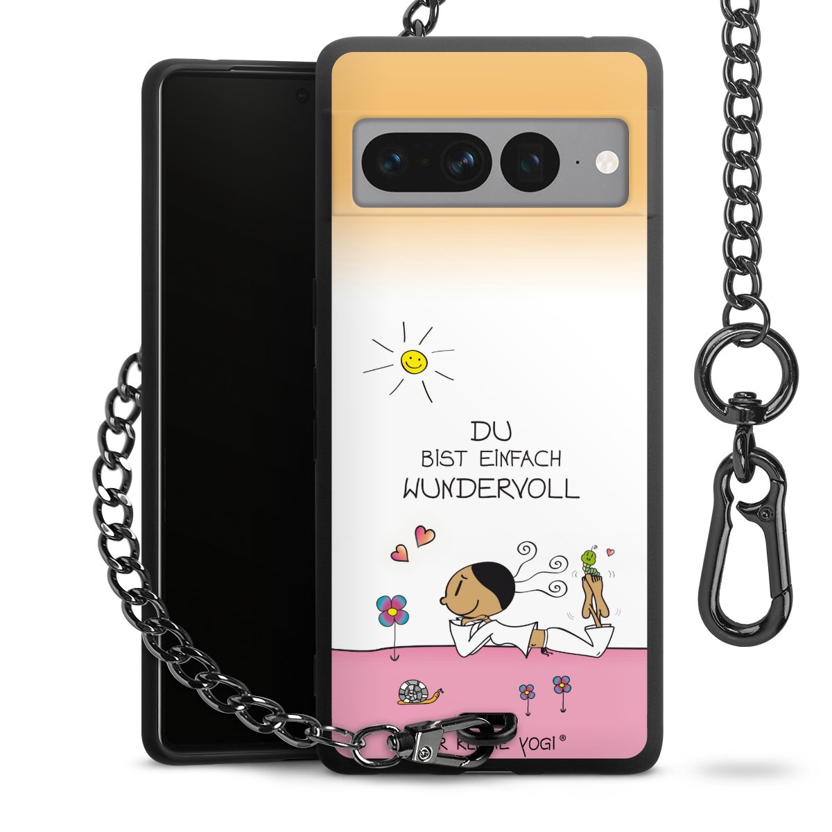 Die mattschwarze Silikon-Handyhülle besteht aus robustem TPU (thermoplastisches Polyurethan). Sie ist flexibel und schützt Dein Smartphone vor Stößen und Kratzern. Die Kette sowie der Karabinerhaken sind aus Metall in Gunmetal-Optik gefertigt. Für dieses Produkt kommen ausschließlich TÜV-geprüfte Materialien zum Einsatz.