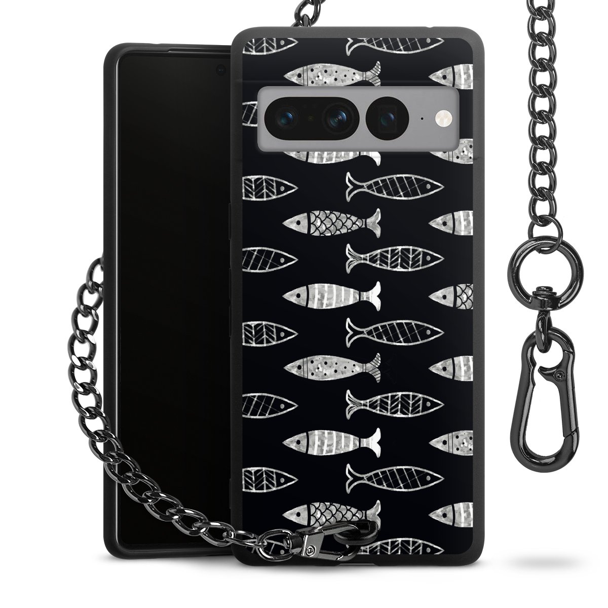 • Mattschwarze Handyhülle mit Metallkette