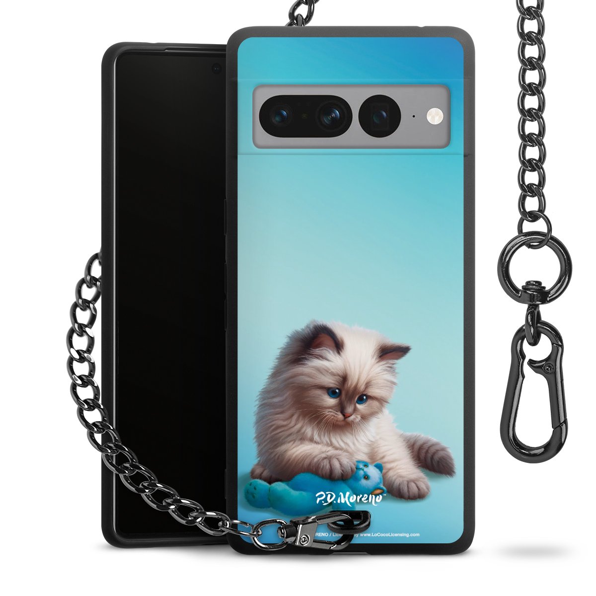 Die mattschwarze Silikon-Handyhülle besteht aus robustem TPU (thermoplastisches Polyurethan). Sie ist flexibel und schützt Dein Smartphone vor Stößen und Kratzern. Die Kette sowie der Karabinerhaken sind aus Metall in Gunmetal-Optik gefertigt. Für dieses Produkt kommen ausschließlich TÜV-geprüfte Materialien zum Einsatz.