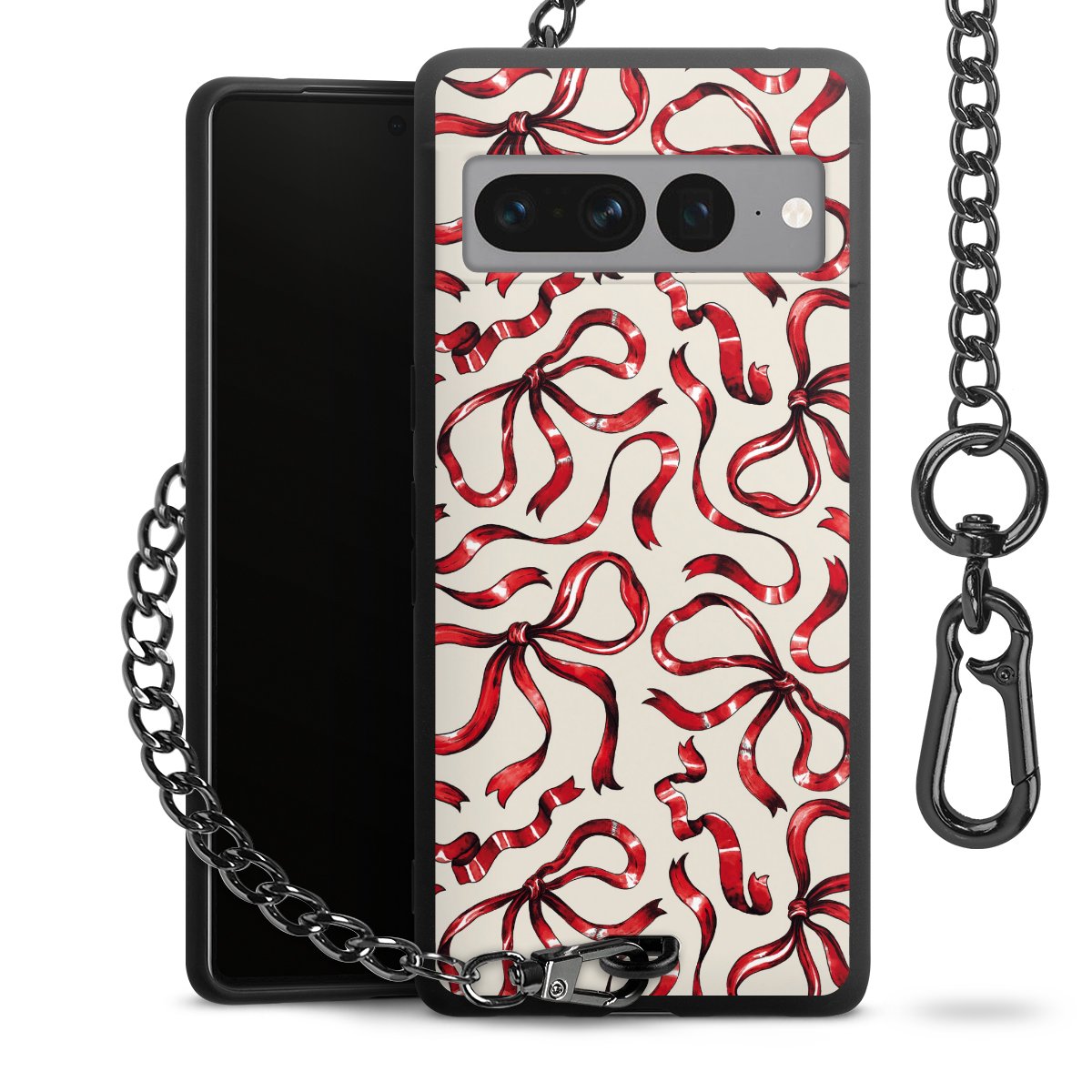 Die mattschwarze Silikon-Handyhülle besteht aus robustem TPU (thermoplastisches Polyurethan). Sie ist flexibel und schützt Dein Smartphone vor Stößen und Kratzern. Die Kette sowie der Karabinerhaken sind aus Metall in Gunmetal-Optik gefertigt. Für dieses Produkt kommen ausschließlich TÜV-geprüfte Materialien zum Einsatz.