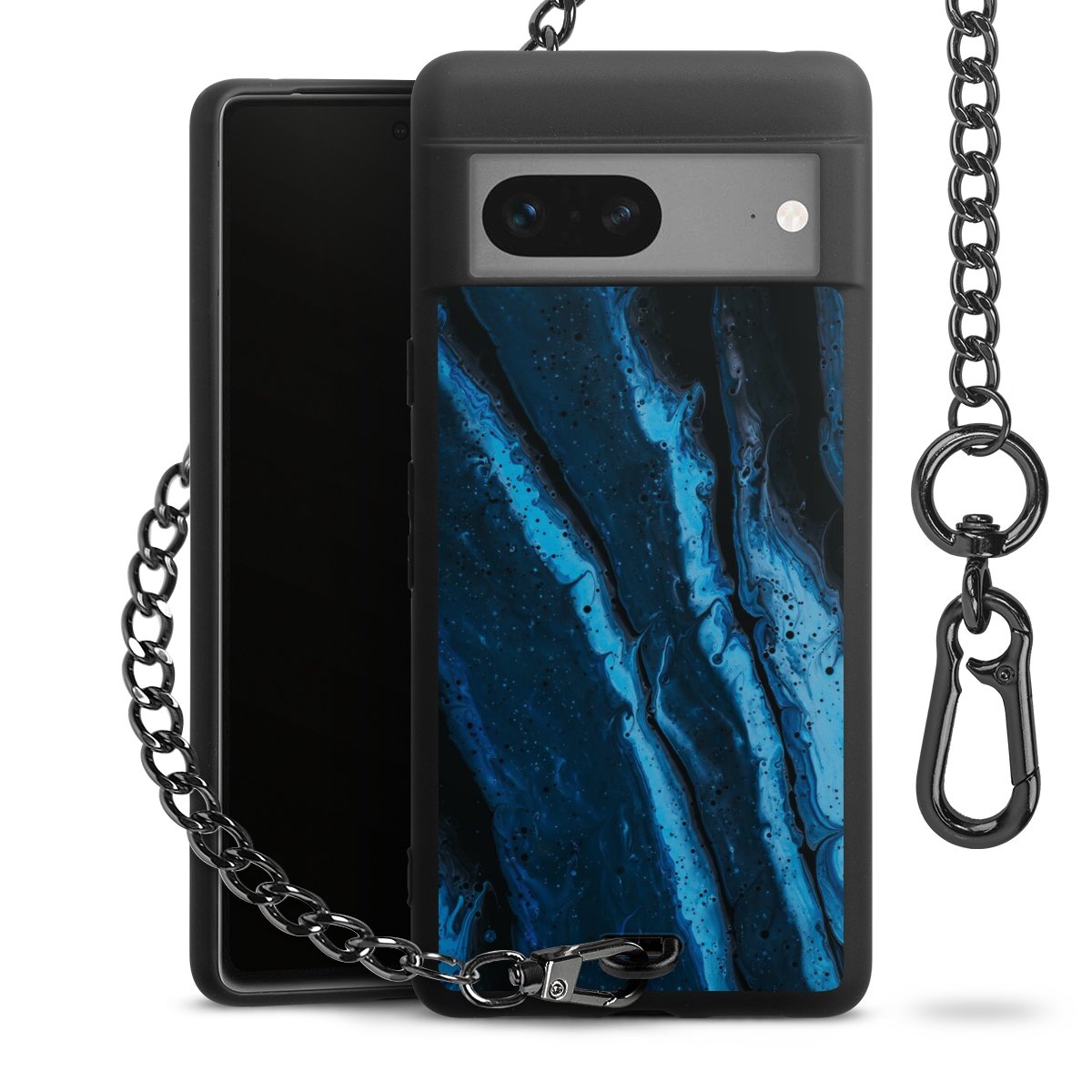 - Mattschwarze Handyhülle mit Metallkette