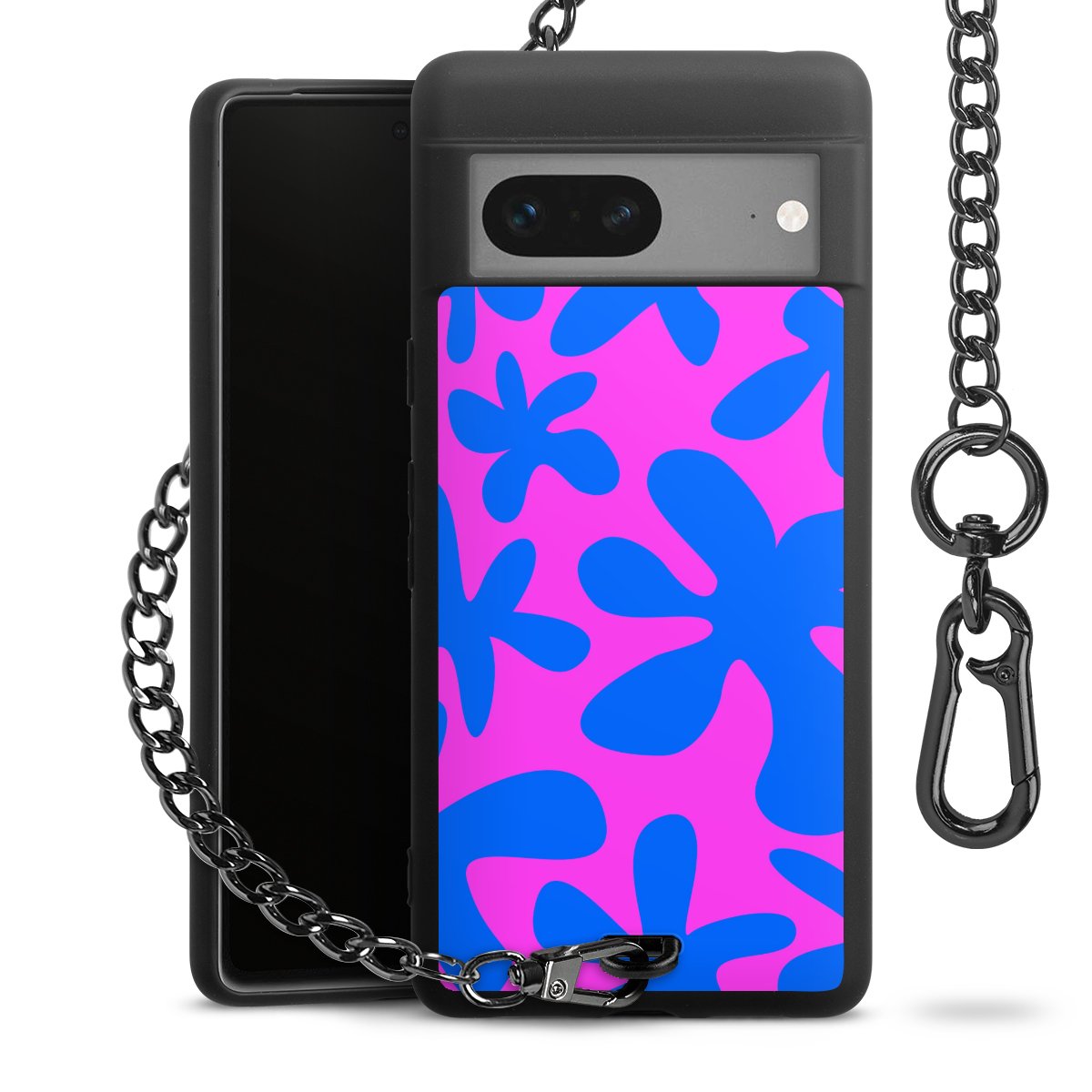 Die mattschwarze Silikon-Handyhülle besteht aus robustem TPU (thermoplastisches Polyurethan). Sie ist flexibel und schützt Dein Smartphone vor Stößen und Kratzern. Die Kette sowie der Karabinerhaken sind aus Metall in Gunmetal-Optik gefertigt. Für dieses Produkt kommen ausschließlich TÜV-geprüfte Materialien zum Einsatz.