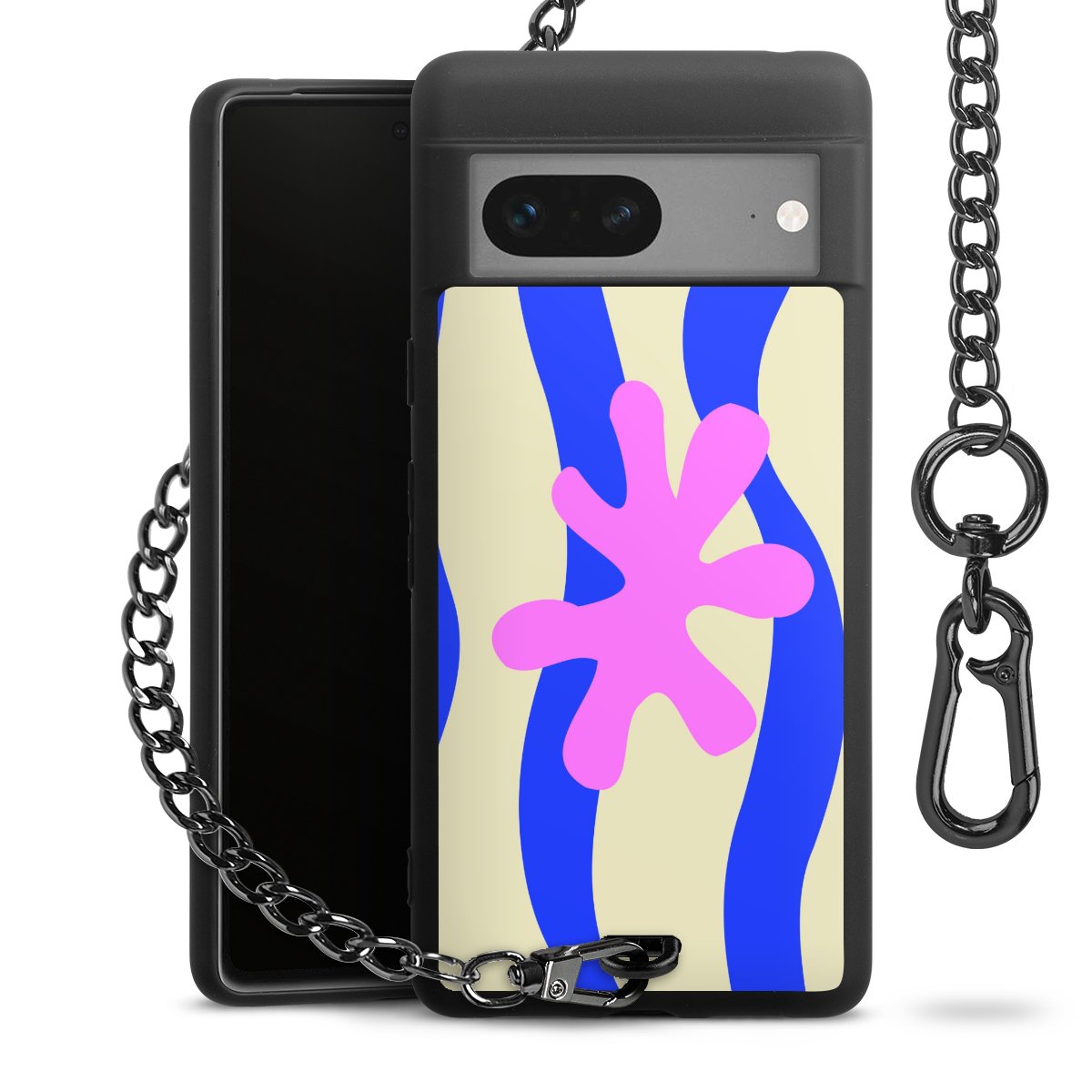 Die mattschwarze Silikon-Handyhülle besteht aus robustem TPU (thermoplastisches Polyurethan). Sie ist flexibel und schützt Dein Smartphone vor Stößen und Kratzern. Die Kette sowie der Karabinerhaken sind aus Metall in Gunmetal-Optik gefertigt. Für dieses Produkt kommen ausschließlich TÜV-geprüfte Materialien zum Einsatz.