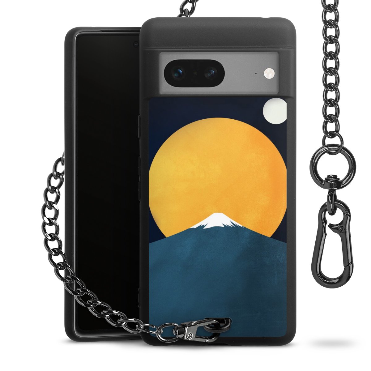 • Mattschwarze Handyhülle mit Metallkette