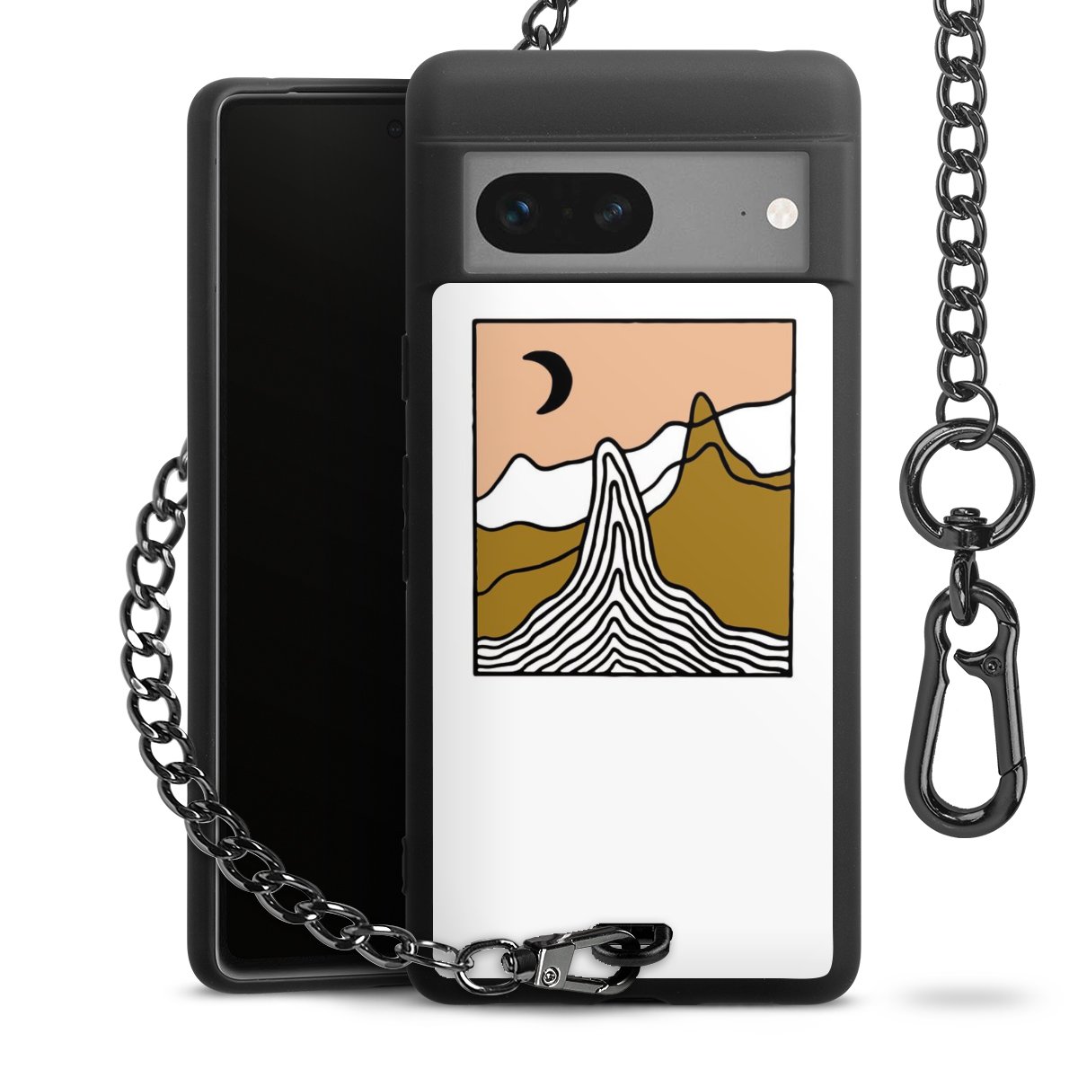 Die mattschwarze Silikon-Handyhülle besteht aus robustem TPU (thermoplastisches Polyurethan). Sie ist flexibel und schützt Dein Smartphone vor Stößen und Kratzern. Die Kette sowie der Karabinerhaken sind aus Metall in Gunmetal-Optik gefertigt. Für dieses Produkt kommen ausschließlich TÜV-geprüfte Materialien zum Einsatz.