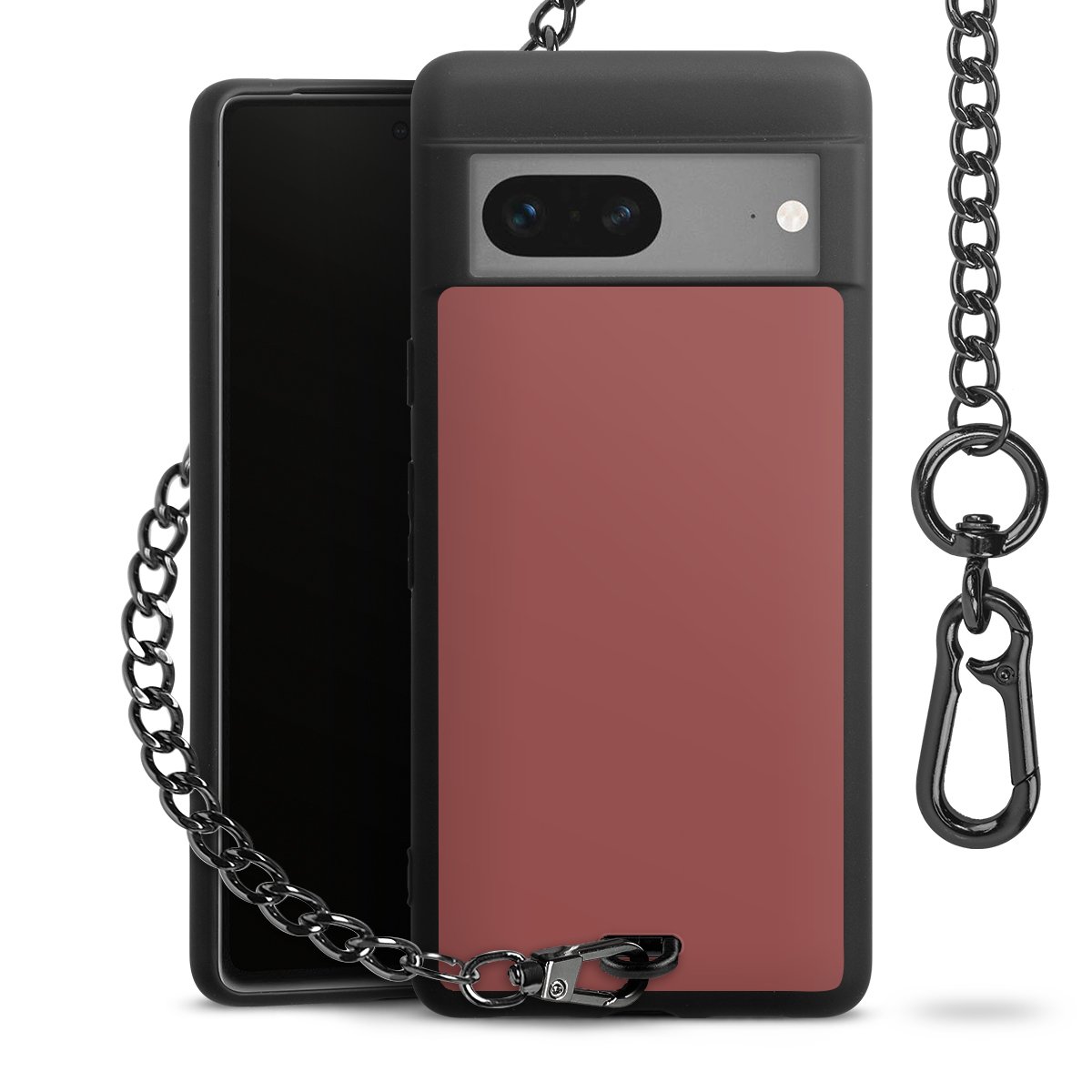 - Mattschwarze Handyhülle mit Metallkette
