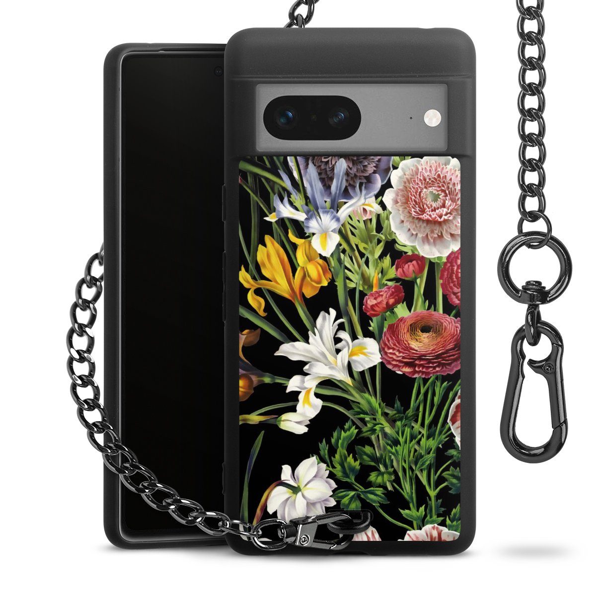 • Mattschwarze Handyhülle mit Metallkette