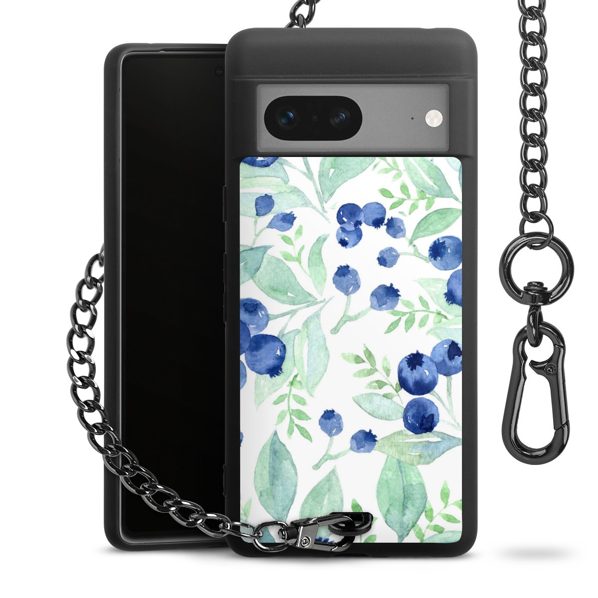 • Mattschwarze Handyhülle mit Metallkette