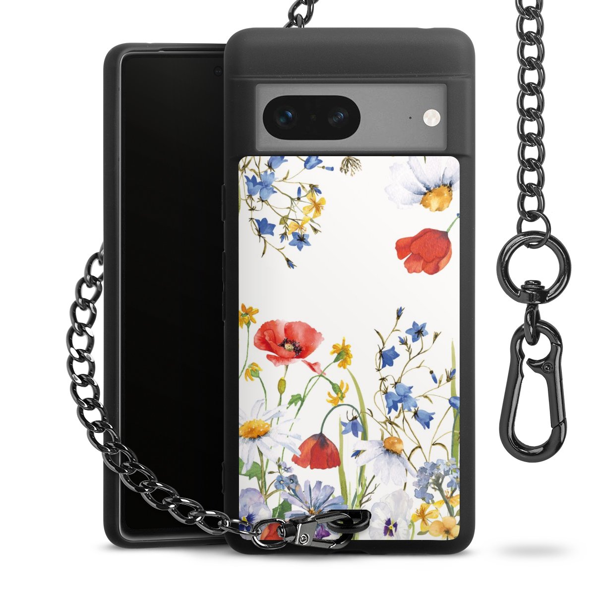 • Mattschwarze Handyhülle mit Metallkette