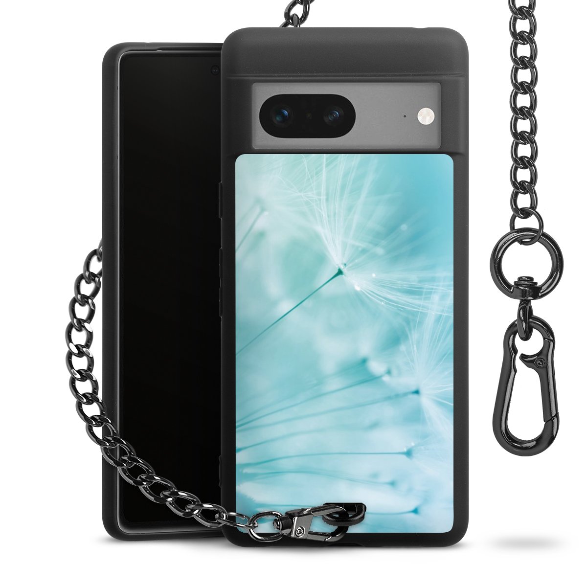 Die mattschwarze Silikon-Handyhülle besteht aus robustem TPU (thermoplastisches Polyurethan). Sie ist flexibel und schützt Dein Smartphone vor Stößen und Kratzern. Die Kette sowie der Karabinerhaken sind aus Metall in Gunmetal-Optik gefertigt. Für dieses Produkt kommen ausschließlich TÜV-geprüfte Materialien zum Einsatz.