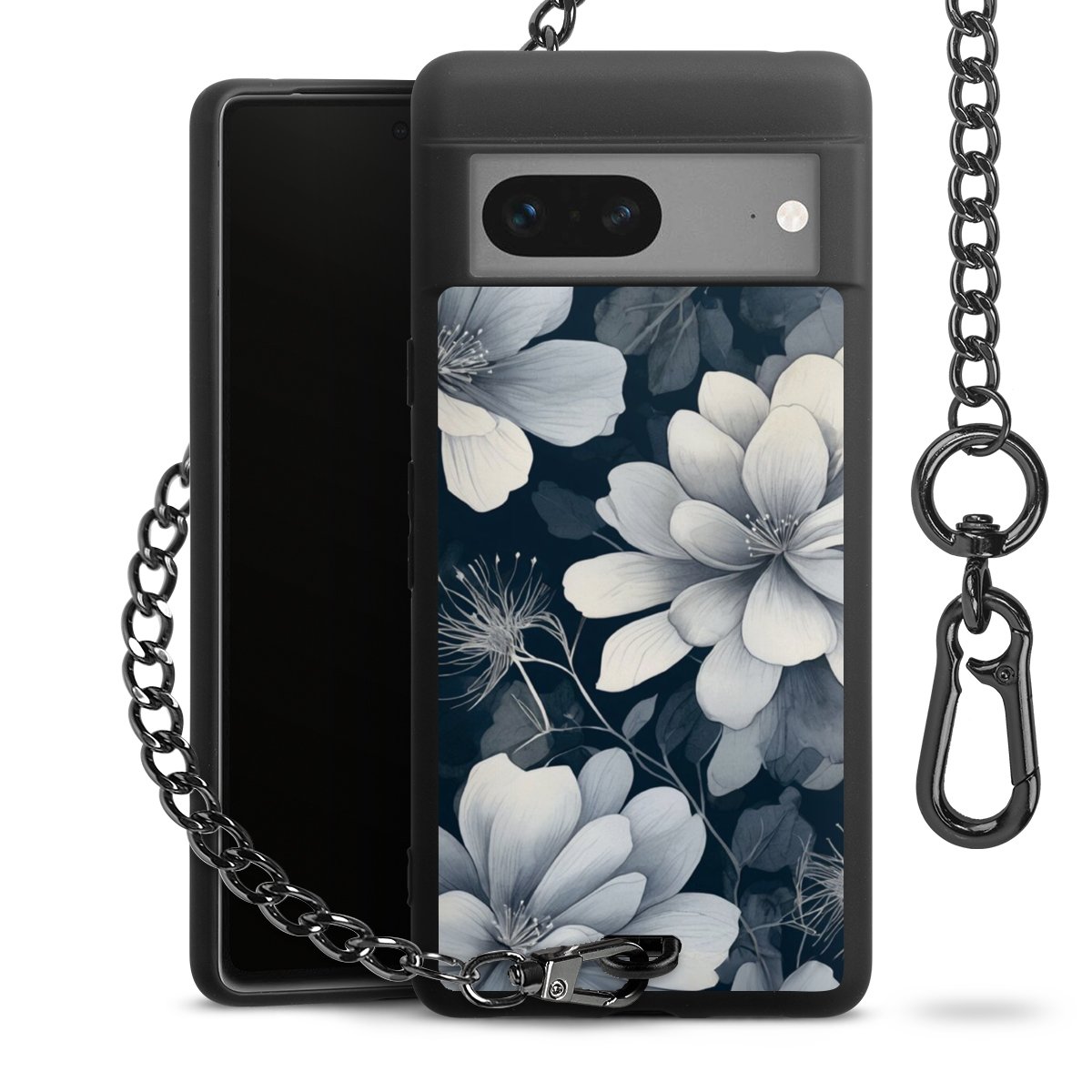 • Mattschwarze Handyhülle mit Metallkette