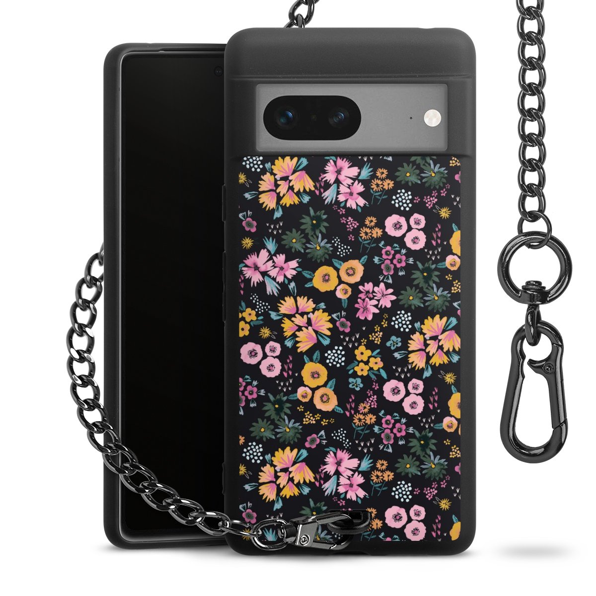 Die mattschwarze Silikon-Handyhülle besteht aus robustem TPU (thermoplastisches Polyurethan). Sie ist flexibel und schützt Dein Smartphone vor Stößen und Kratzern. Die Kette sowie der Karabinerhaken sind aus Metall in Gunmetal-Optik gefertigt. Für dieses Produkt kommen ausschließlich TÜV-geprüfte Materialien zum Einsatz.