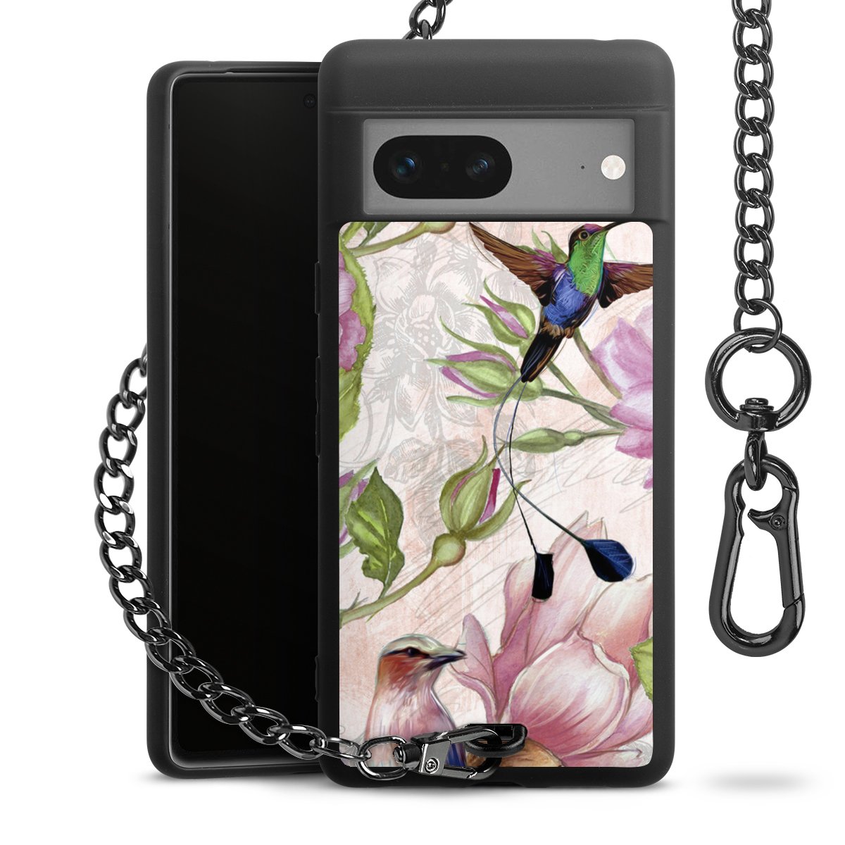 • Mattschwarze Handyhülle mit Metallkette