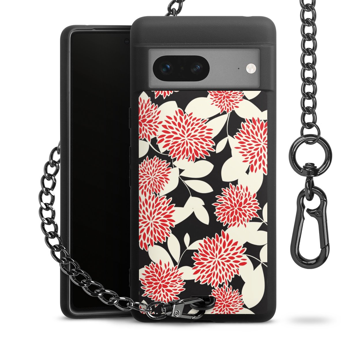 - Mattschwarze Handyhülle mit Metallkette