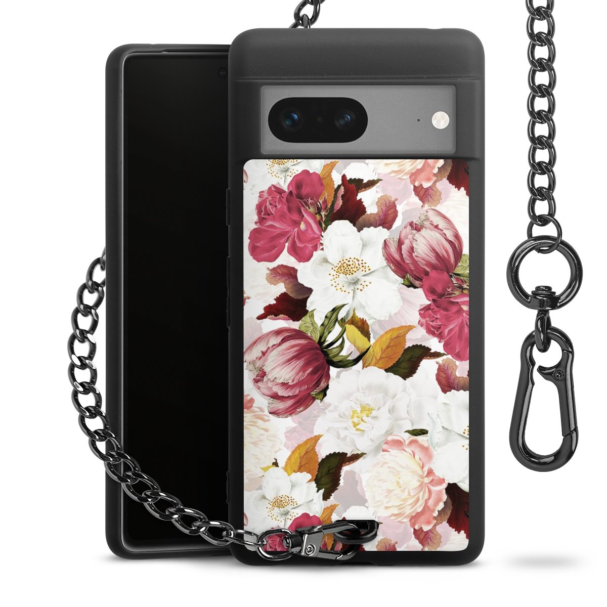 Die mattschwarze Silikon-Handyhülle besteht aus robustem TPU (thermoplastisches Polyurethan). Sie ist flexibel und schützt Dein Smartphone vor Stößen und Kratzern. Die Kette sowie der Karabinerhaken sind aus Metall in Gunmetal-Optik gefertigt. Für dieses Produkt kommen ausschließlich TÜV-geprüfte Materialien zum Einsatz.