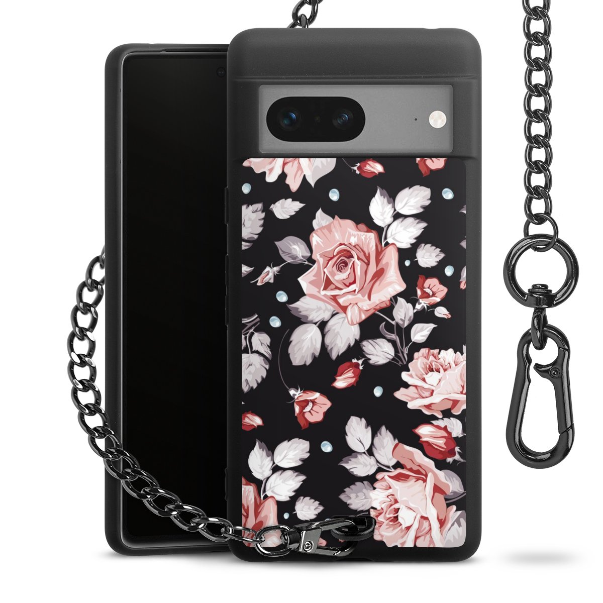 - Mattschwarze Handyhülle mit Metallkette
