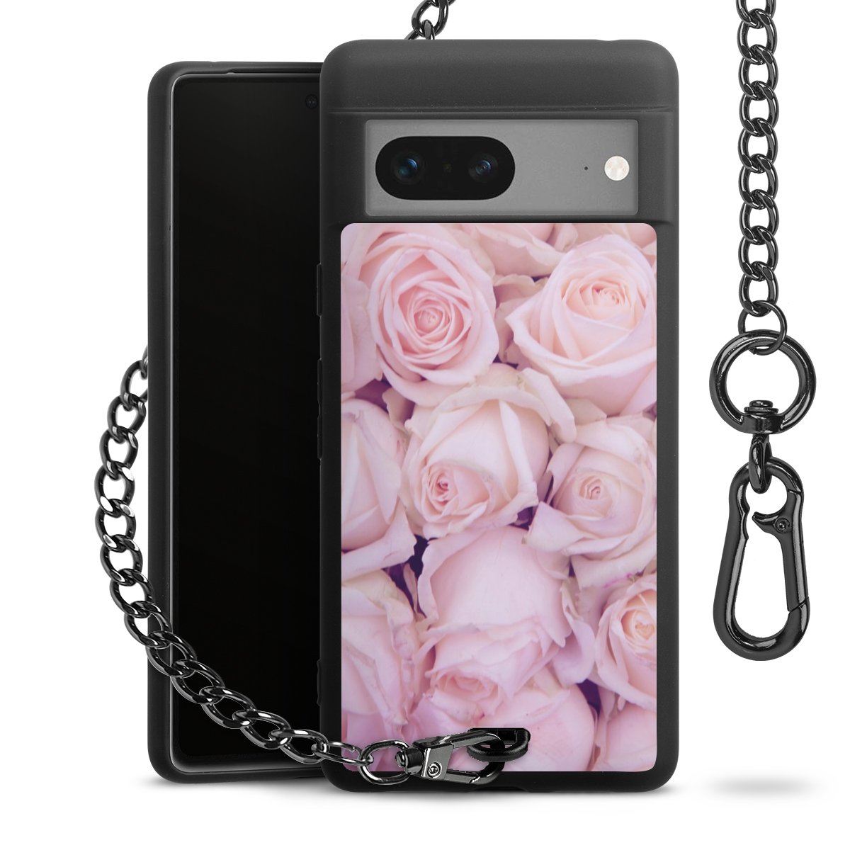 Die mattschwarze Silikon-Handyhülle besteht aus robustem TPU (thermoplastisches Polyurethan). Sie ist flexibel und schützt Dein Smartphone vor Stößen und Kratzern. Die Kette sowie der Karabinerhaken sind aus Metall in Gunmetal-Optik gefertigt. Für dieses Produkt kommen ausschließlich TÜV-geprüfte Materialien zum Einsatz.