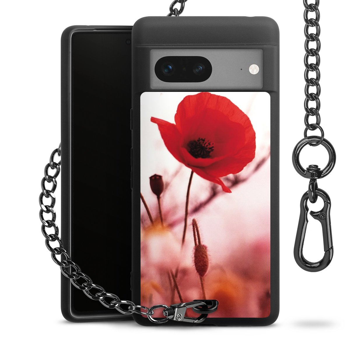Die mattschwarze Silikon-Handyhülle besteht aus robustem TPU (thermoplastisches Polyurethan). Sie ist flexibel und schützt Dein Smartphone vor Stößen und Kratzern. Die Kette sowie der Karabinerhaken sind aus Metall in Gunmetal-Optik gefertigt. Für dieses Produkt kommen ausschließlich TÜV-geprüfte Materialien zum Einsatz.