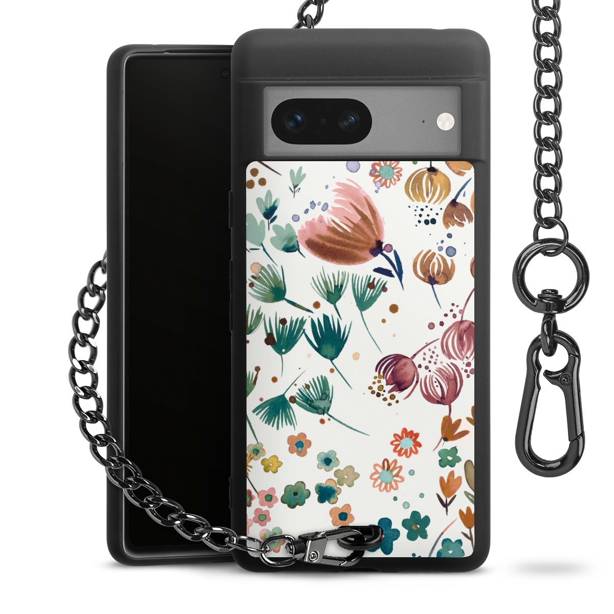 • Mattschwarze Handyhülle mit Metallkette