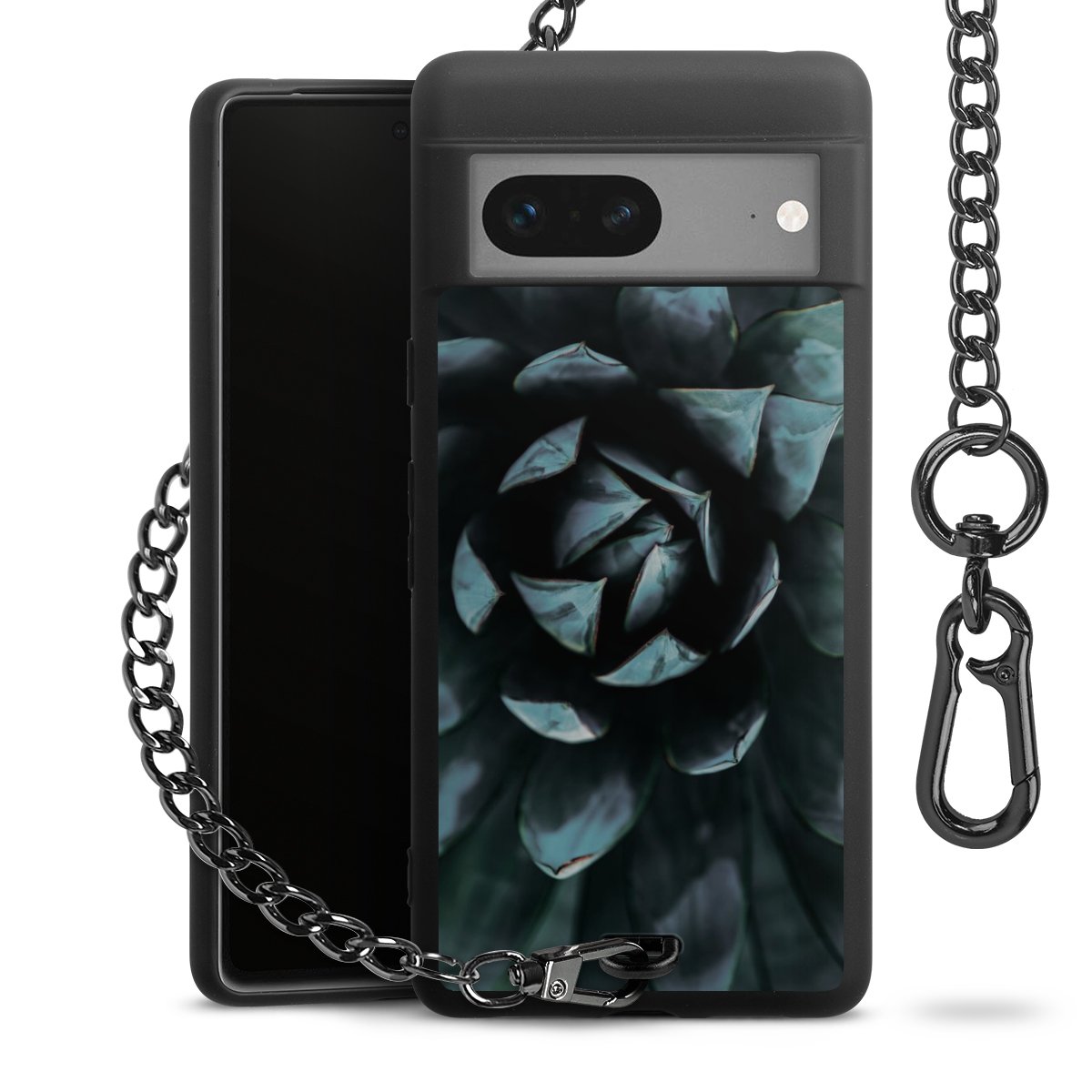 - Mattschwarze Handyhülle mit Metallkette