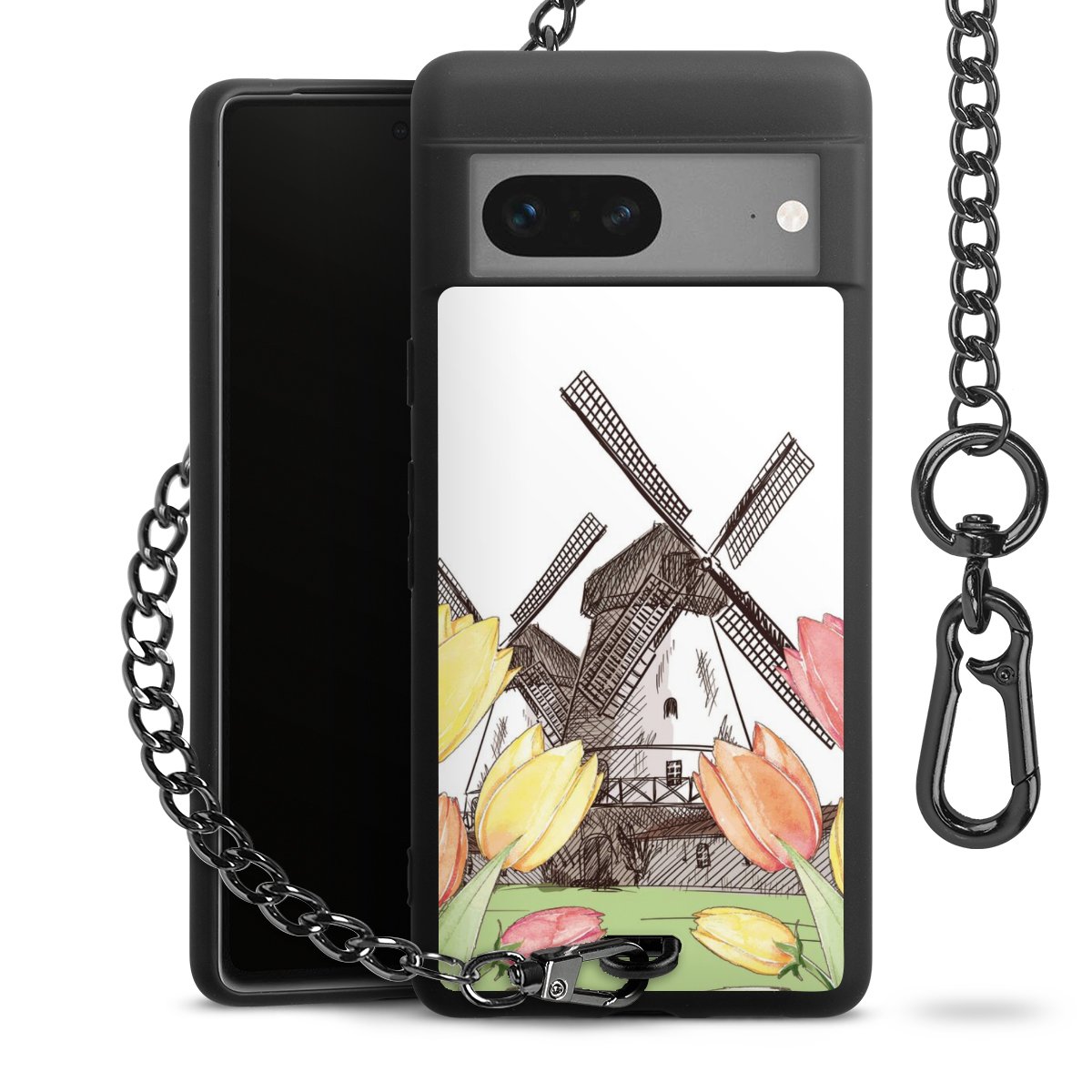 Die mattschwarze Silikon-Handyhülle besteht aus robustem TPU (thermoplastisches Polyurethan). Sie ist flexibel und schützt Dein Smartphone vor Stößen und Kratzern. Die Kette sowie der Karabinerhaken sind aus Metall in Gunmetal-Optik gefertigt. Für dieses Produkt kommen ausschließlich TÜV-geprüfte Materialien zum Einsatz.