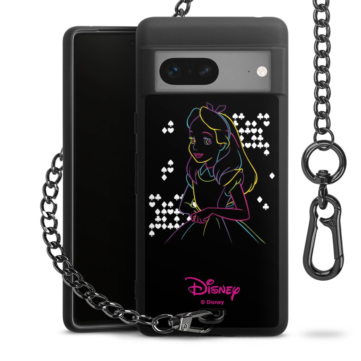 Die mattschwarze Silikon-Handyhülle besteht aus robustem TPU (thermoplastisches Polyurethan). Sie ist flexibel und schützt Dein Smartphone vor Stößen und Kratzern. Die Kette sowie der Karabinerhaken sind aus Metall in Gunmetal-Optik gefertigt. Für dieses Produkt kommen ausschließlich TÜV-geprüfte Materialien zum Einsatz.