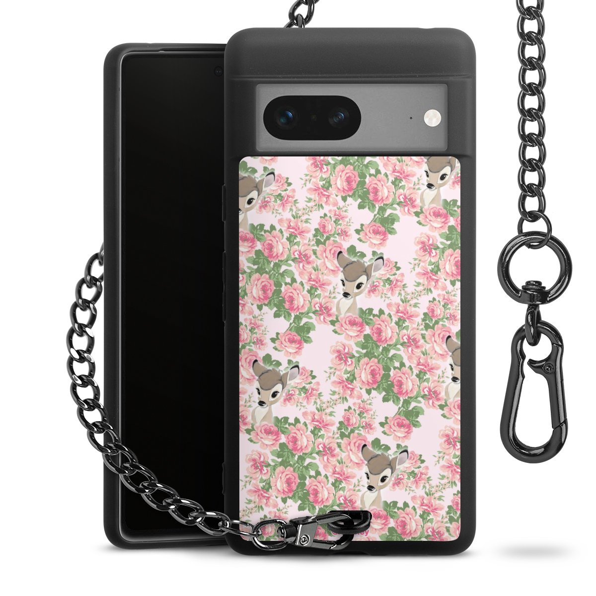 Die mattschwarze Silikon-Handyhülle besteht aus robustem TPU (thermoplastisches Polyurethan). Sie ist flexibel und schützt Dein Smartphone vor Stößen und Kratzern. Die Kette sowie der Karabinerhaken sind aus Metall in Gunmetal-Optik gefertigt. Für dieses Produkt kommen ausschließlich TÜV-geprüfte Materialien zum Einsatz.