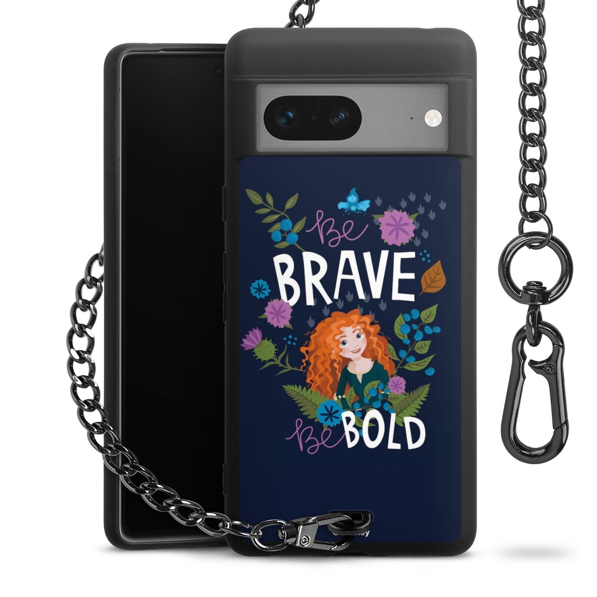 - Mattschwarze Handyhülle mit Metallkette